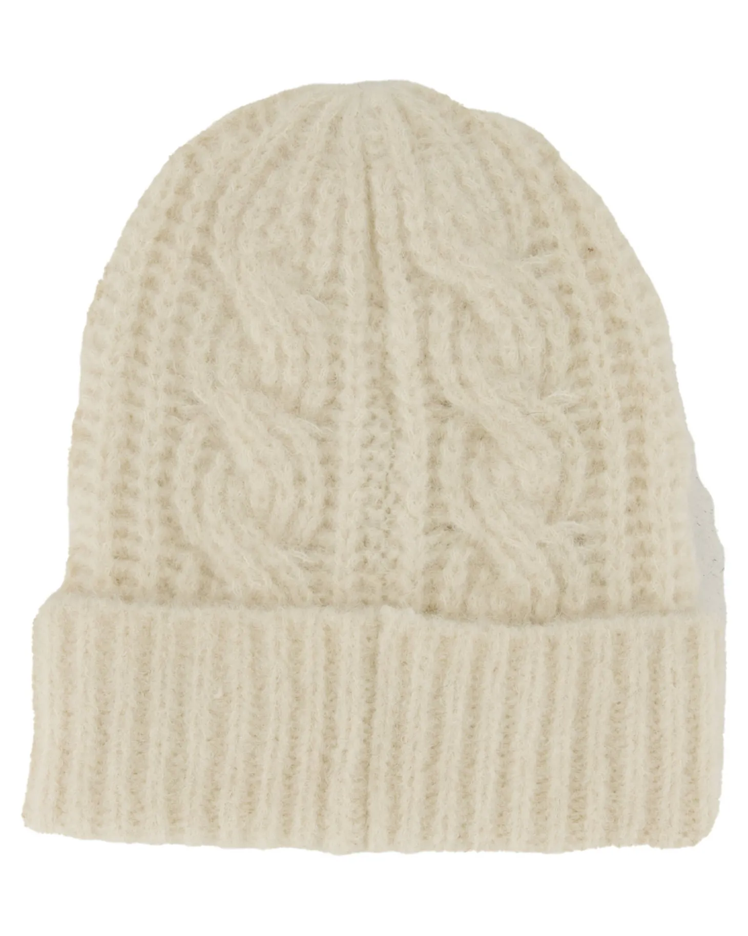 Schöner Beanie mit Zopfmuster und geripptem Umschlag.