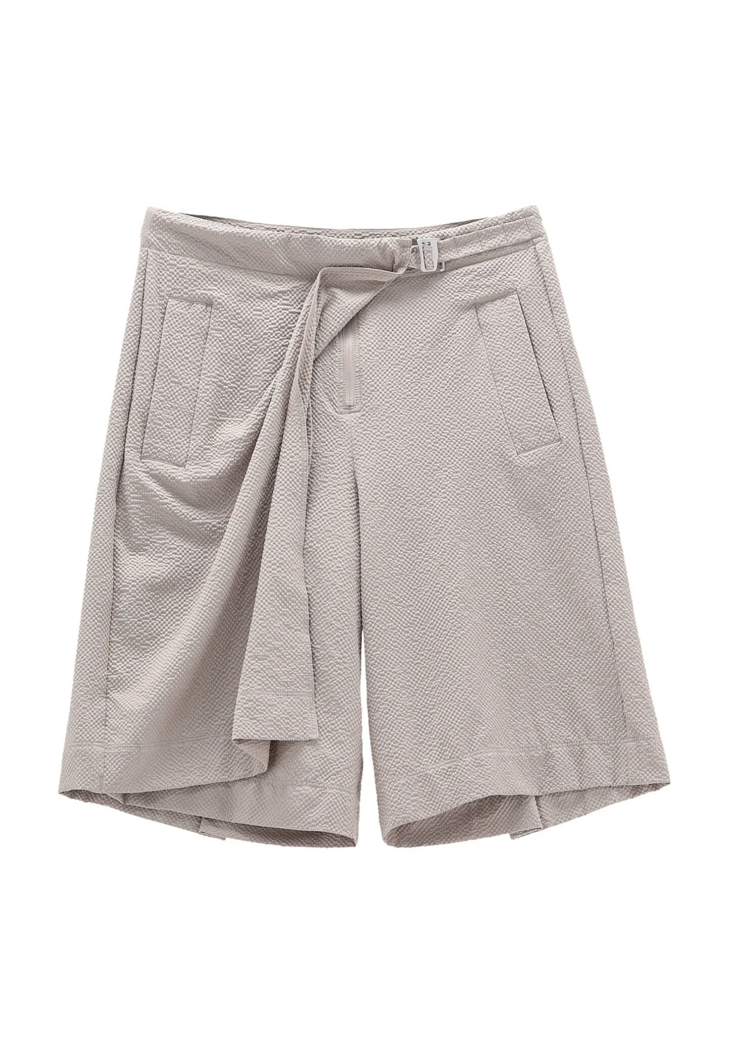 Dieser Bermuda-Rock von Jeanne Baret zeichnen sich durch ihren weiten, geraden Schnitt und eine Wickel-Frontverschluss aus, die mit einem Haken einfach verschlossen und eingestellt werden kann. Der geraffte Seersucker-Stoff verleiht ihnen einen knautschigen Look, während die zwei geräumigen vorderen Reißverschlusstaschen praktischen Stauraum für persönliche Gegenstände bieten. Perfekt für einen lässigen und dennoch stilvollen Auftritt.