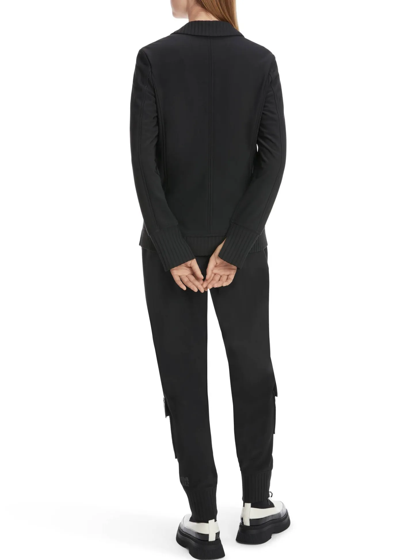 Dieser Blazer überzeugt mit seinem unvergleichlichen Tragekomfort. Er ist aus Bistretch-Jersey gefertigt und besitzt eine kuschelig warme, aufgeraute Innenseite. Blickfang ist das Revers mit seinem breiten Rippen-Kragen. Ebenso sind die Ärmelbündchen, Leistentaschen und der rückwärtige Abschluss mit sportiven Rippen-Bündchen designt. Der Blazer besitzt eine taillierte Silhouette mit Teilungsnähten.