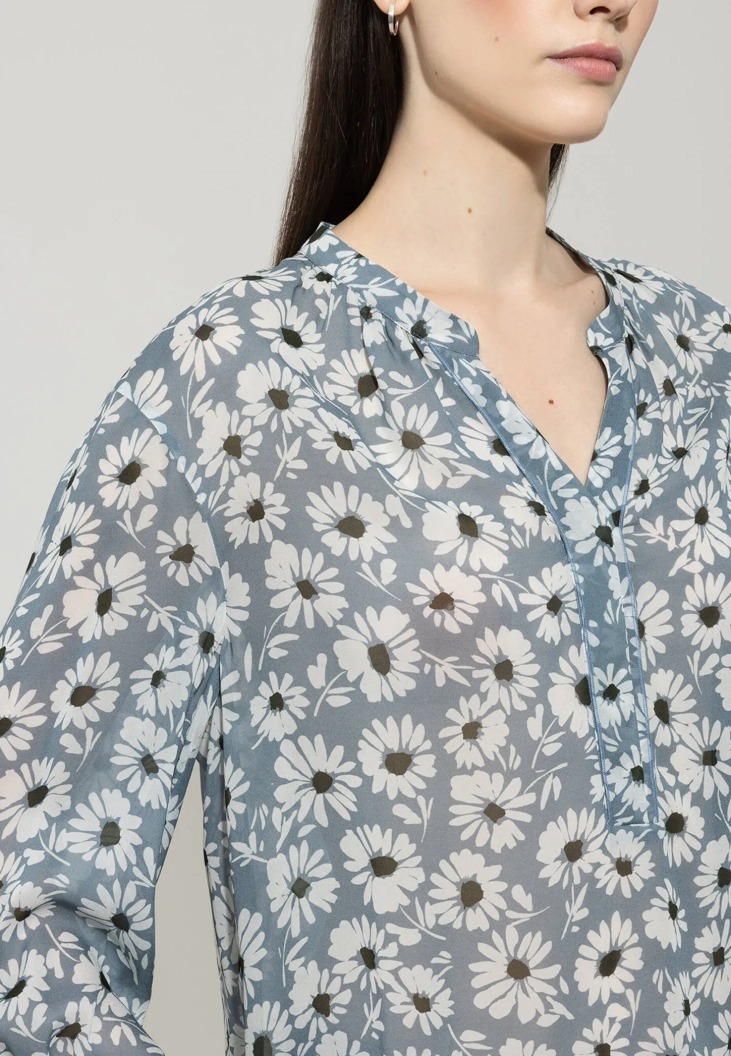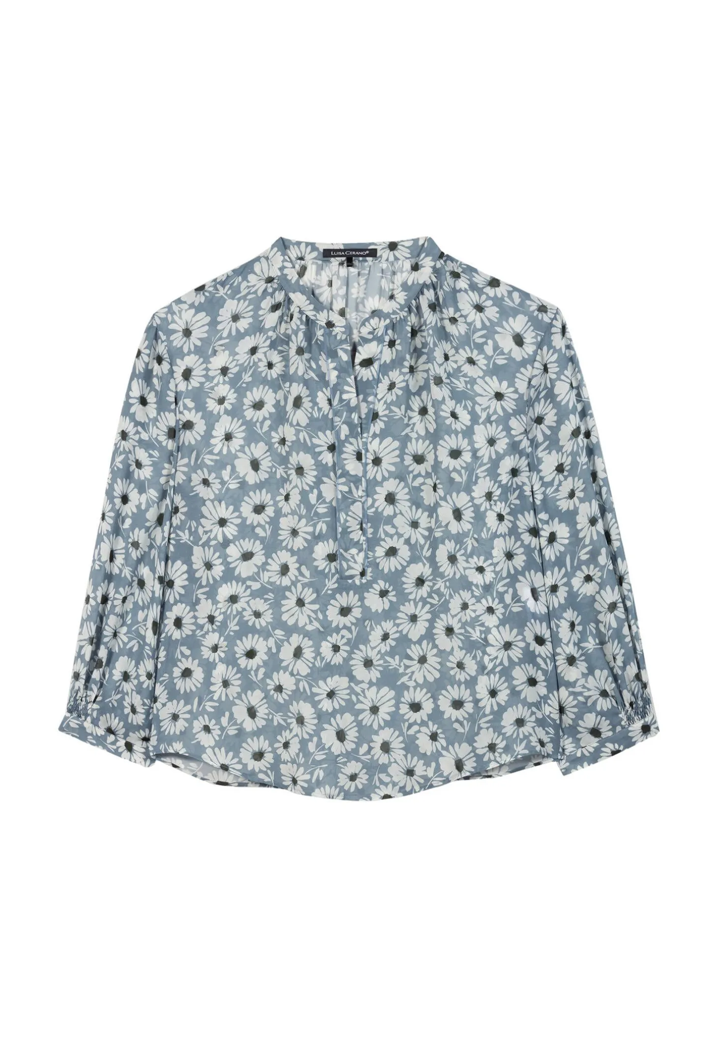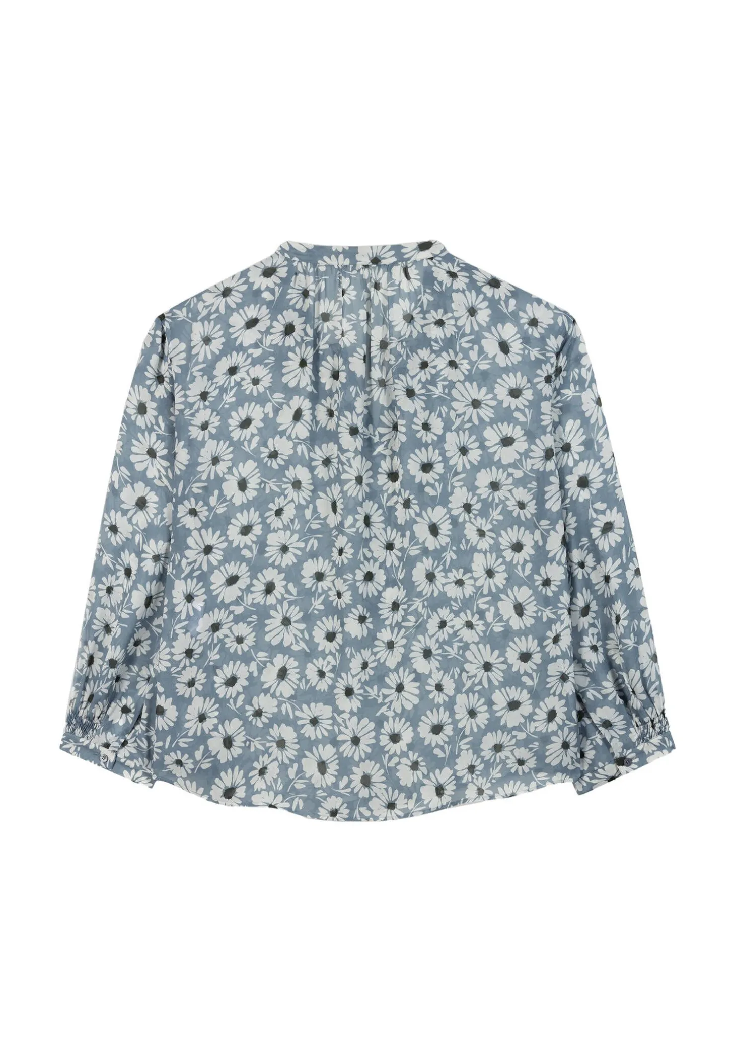 - Ärmel mit gesmokten Details und geknöpften, schmalen Manschetten