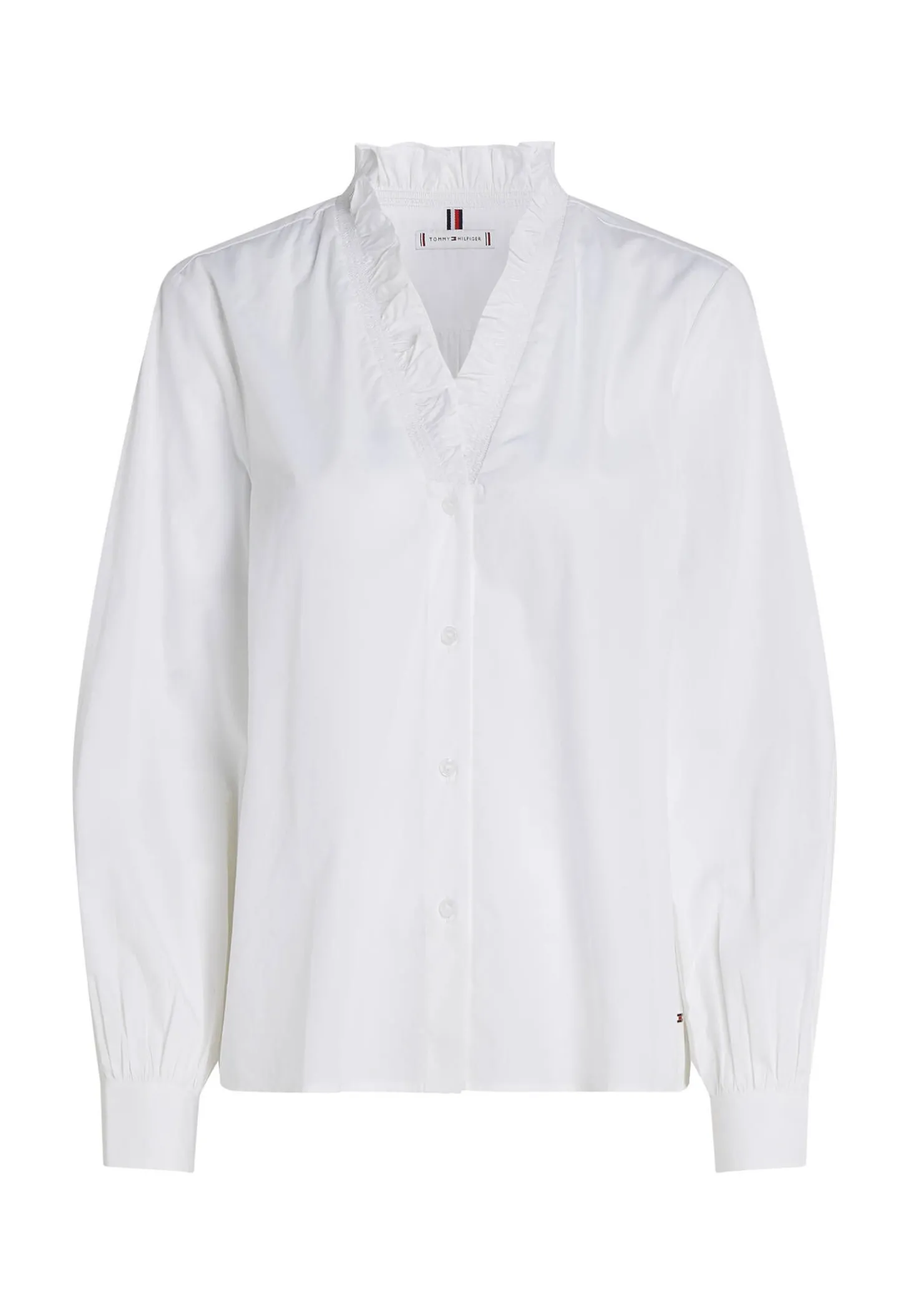 Die Bluse von Tommy Hilfiger ist aus hochwertigem Baumwollpopeline gefertigt und eignet sich perfekt für stilvolle Outfits von morgens bis abends.