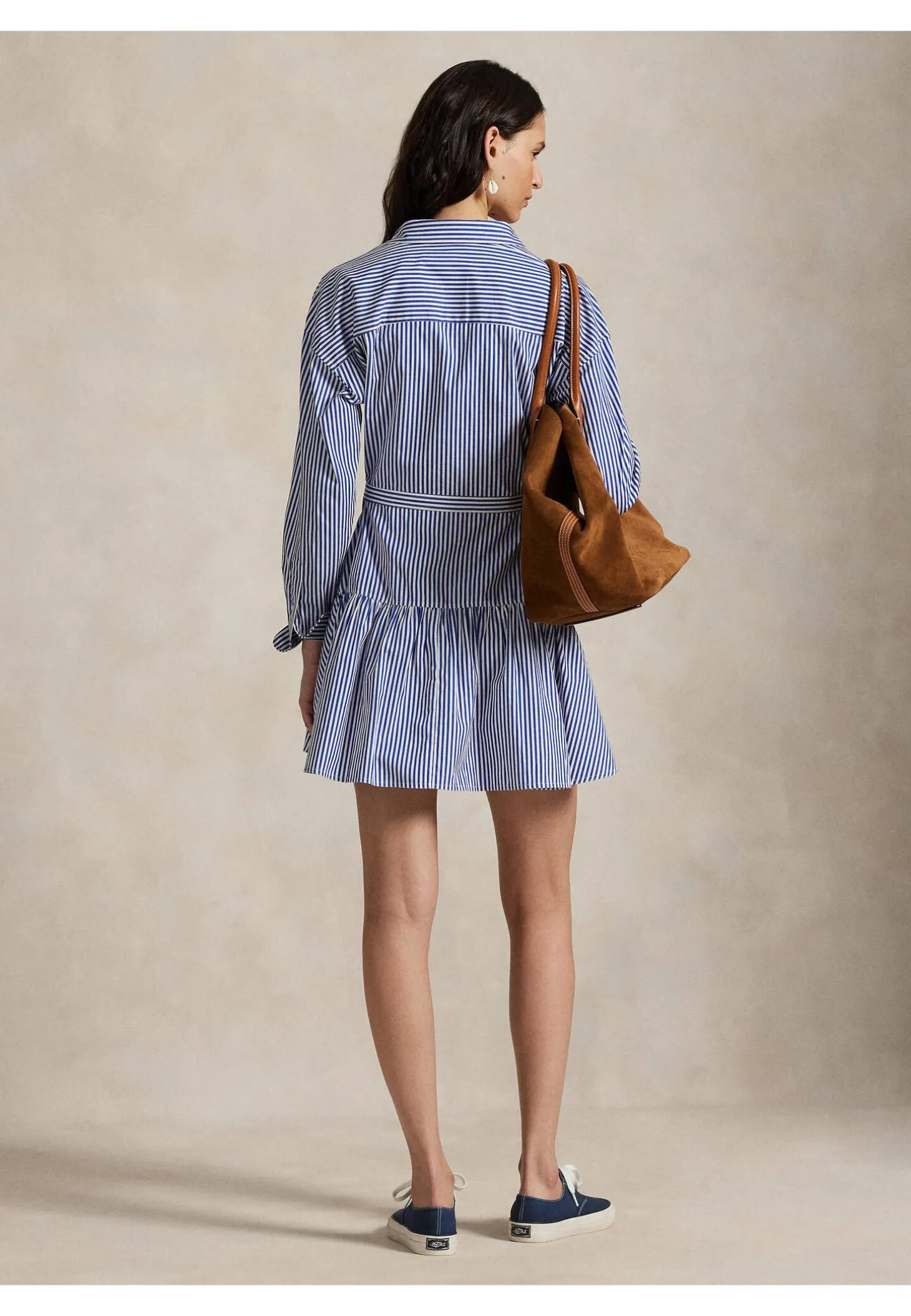 - Oben körpernahe, nach unten hin ausgestellte Silhouette