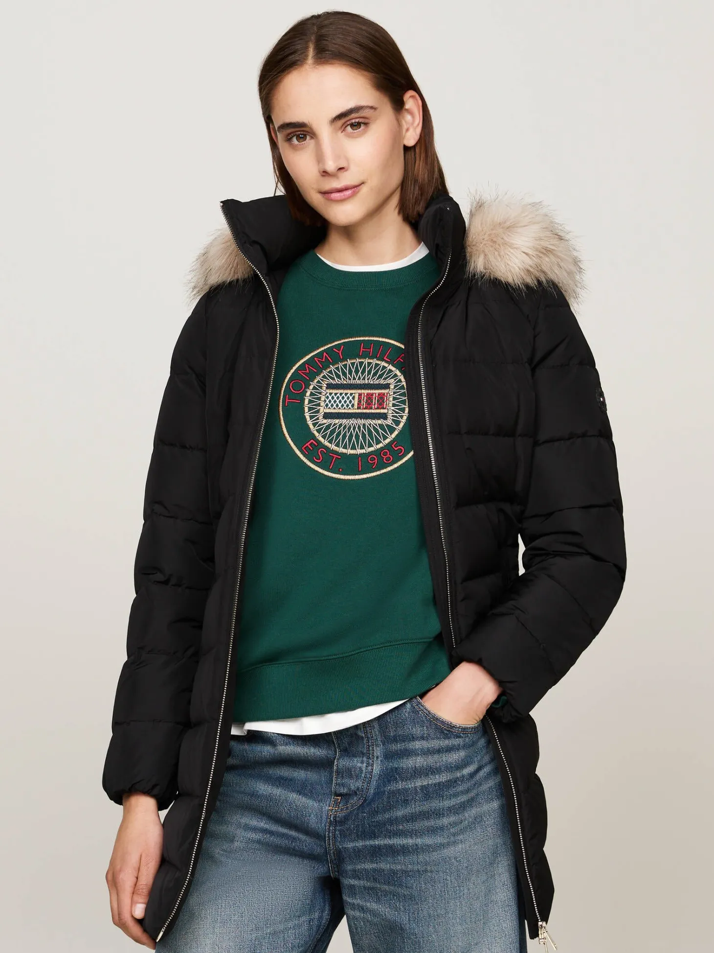 - Fixierte Kapuze mit abnehmbarem Kunstpelz-Besatz