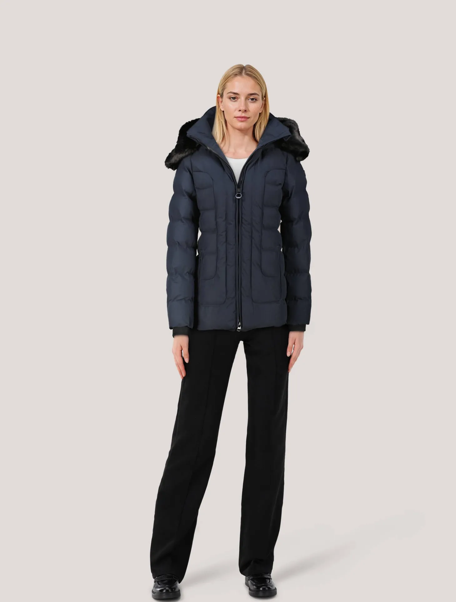 - Abnehmbarer Kunstpelz (Reißverschluss)