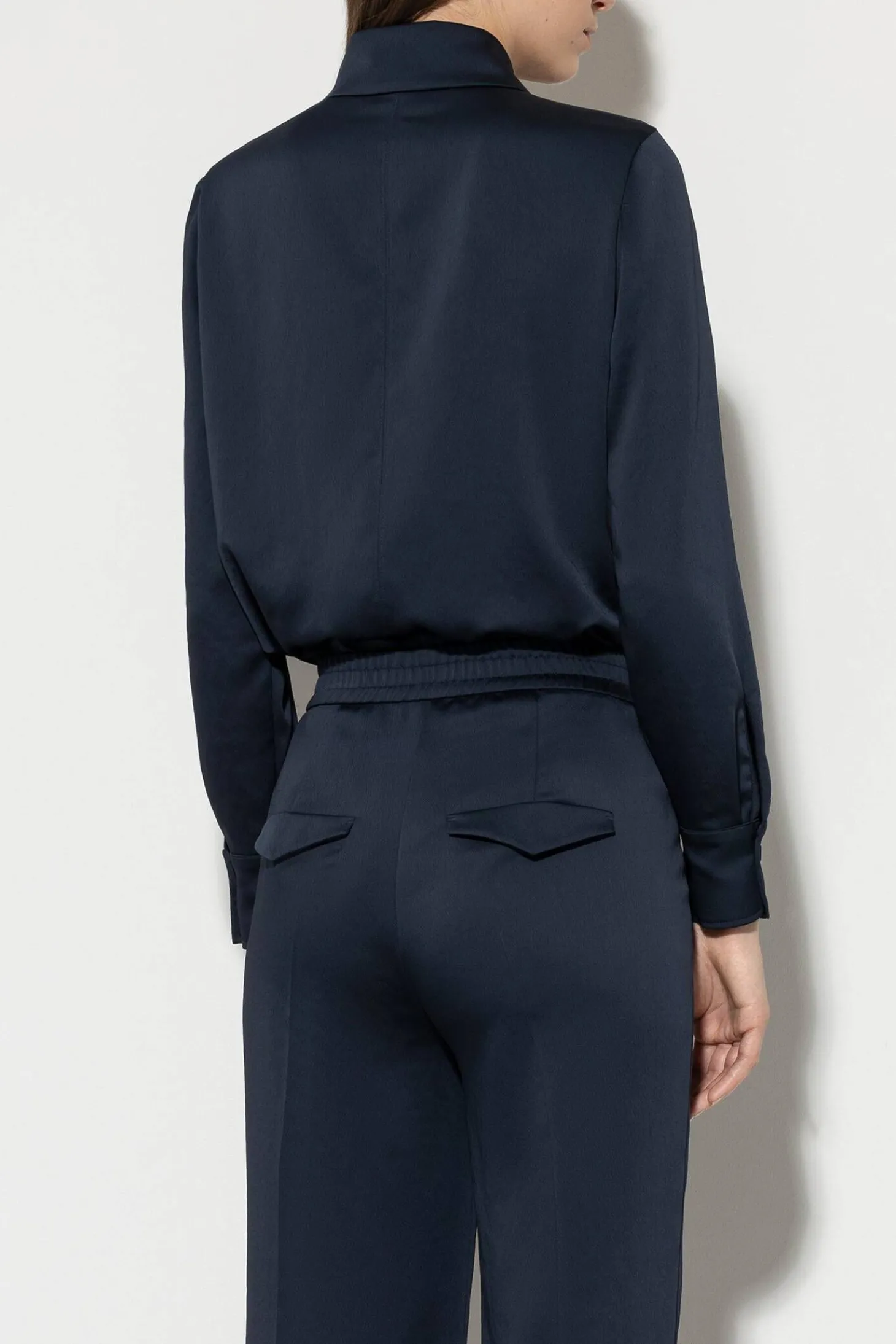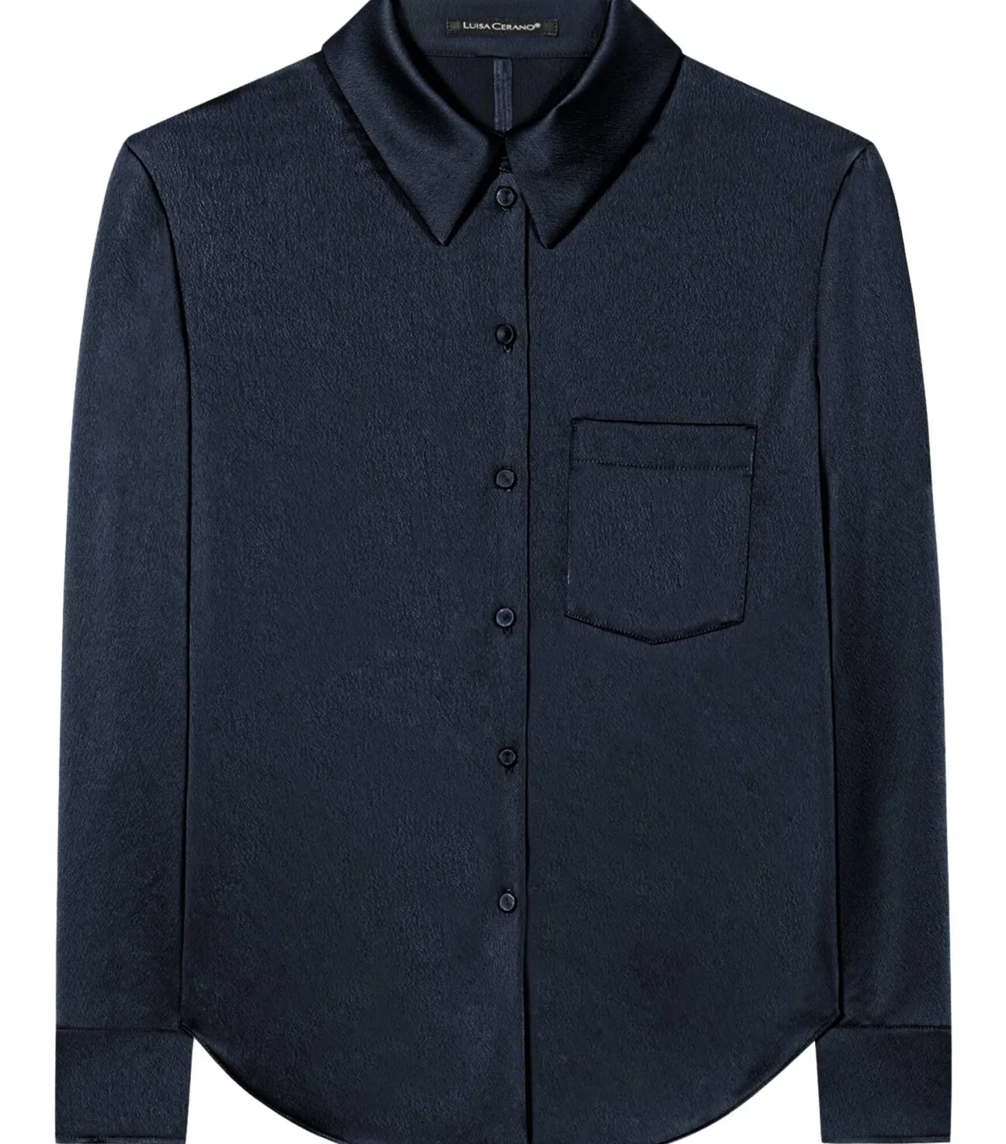 Elegante, schmalgeschnittene Hemdbluse von Luisa Cerano aus fließendem Techno-Material, ausgestattet mit Brusttasche und stoffbezogenen Knöpfen.