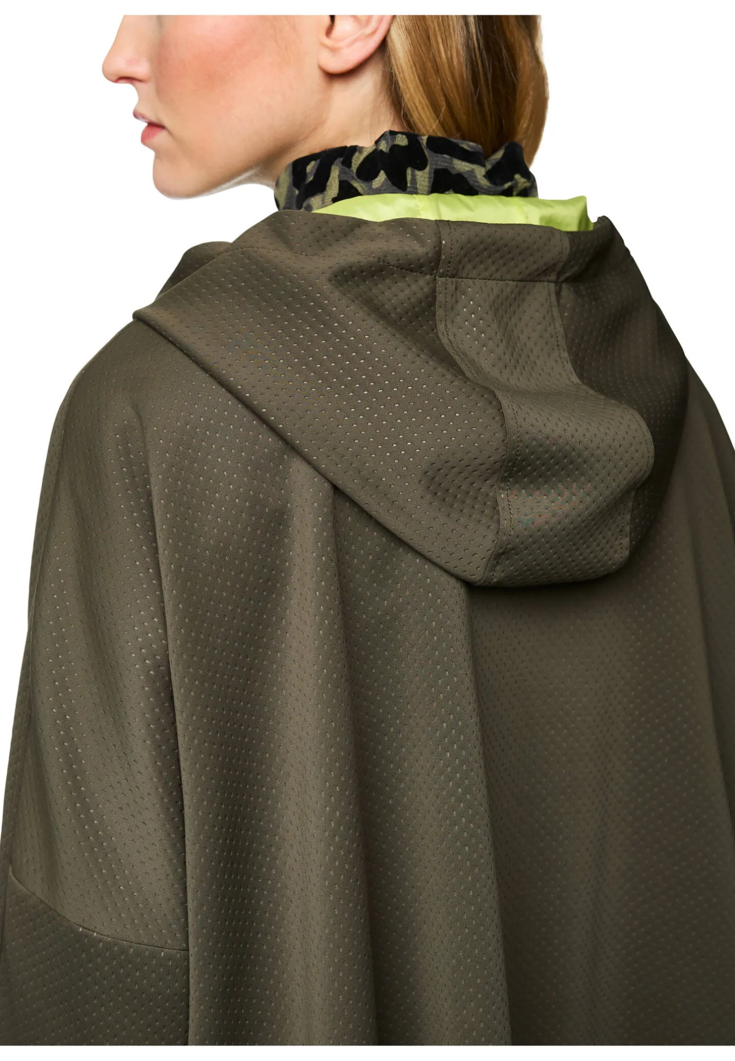 - Ausschnitt & Kragen: Kapuze