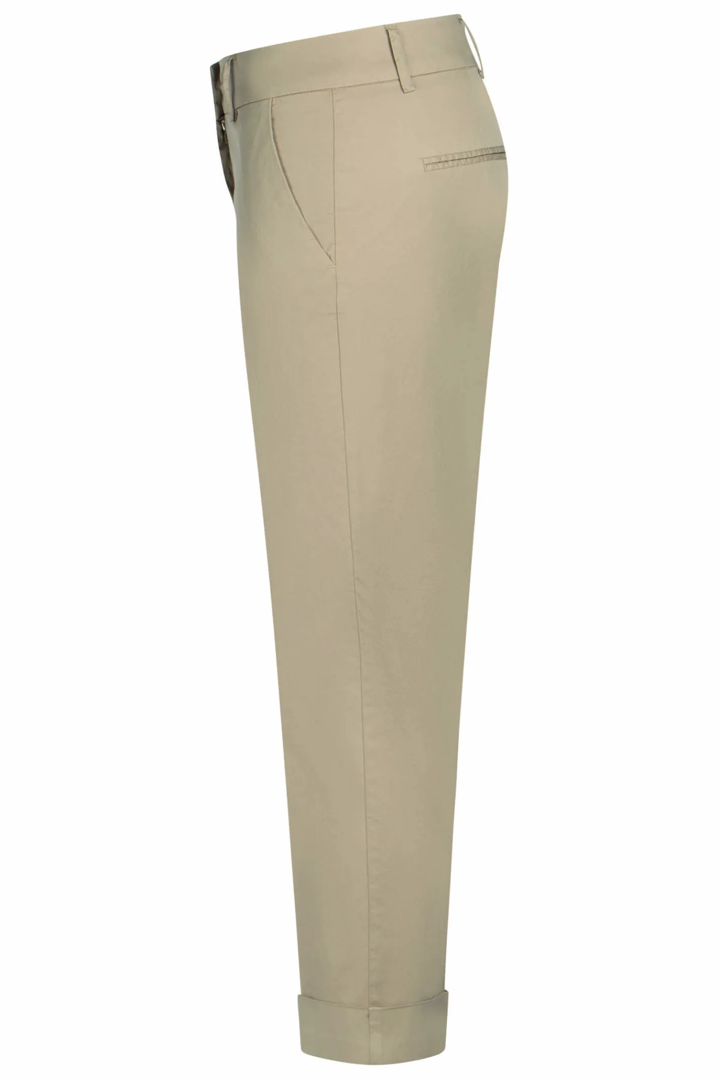 - Seitliche Eingrifftaschen, zwei paspelierte Gesäßtaschen