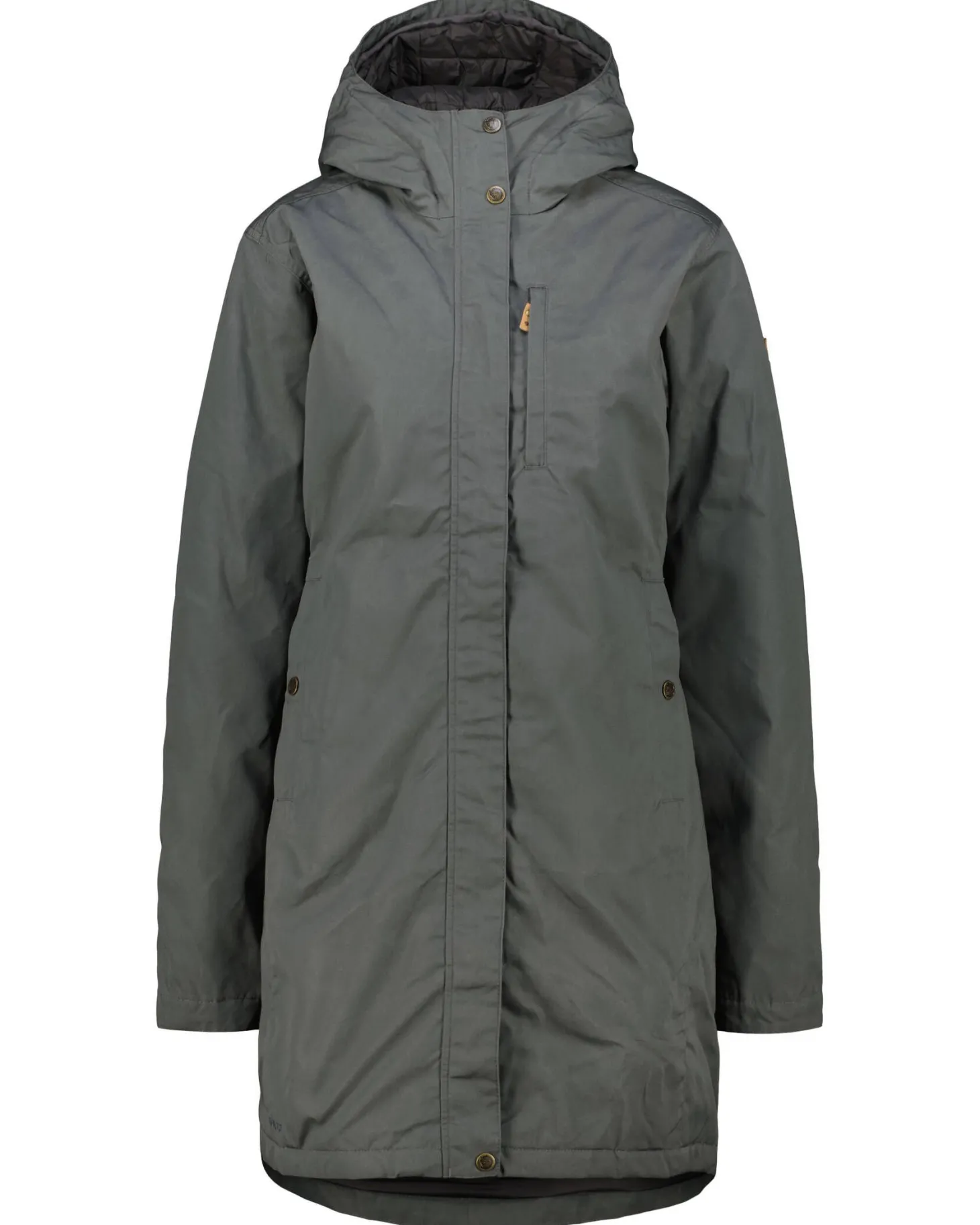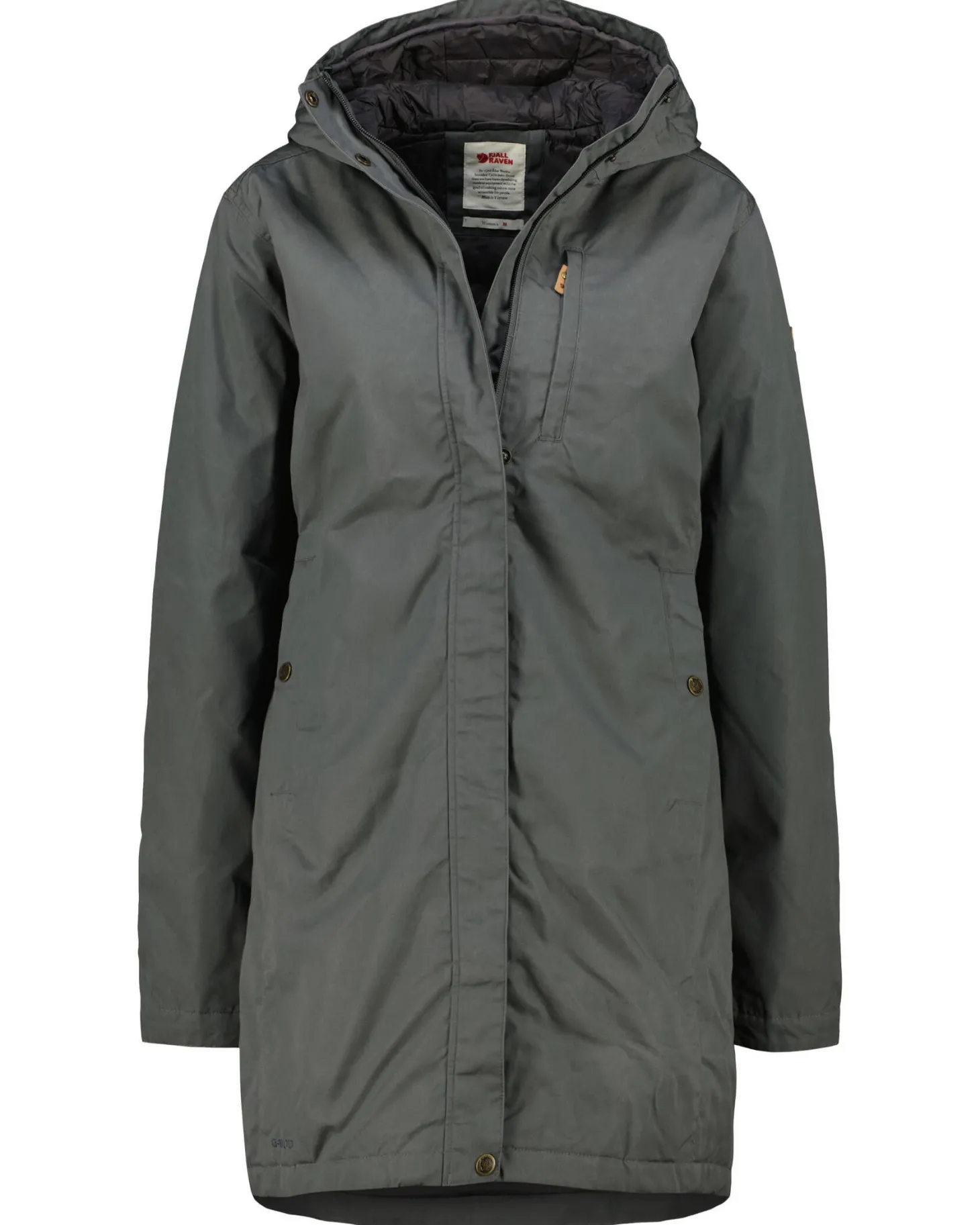 - Hoher Kragen mit fixierter, verstellbarer Kapuze