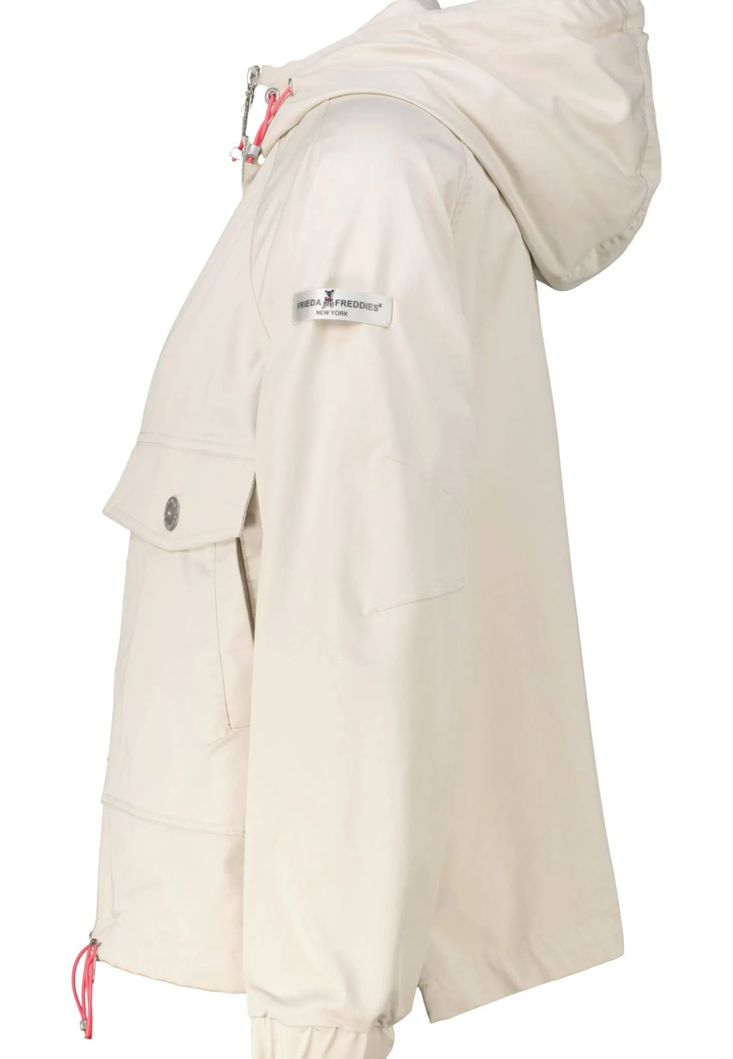 - Verstellbare Kapuze mit farbigem Kordelzug