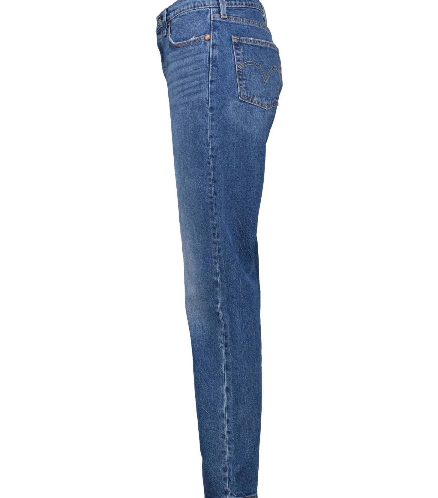 - Mit charakteristischem Leder-Patch am Bund hinten