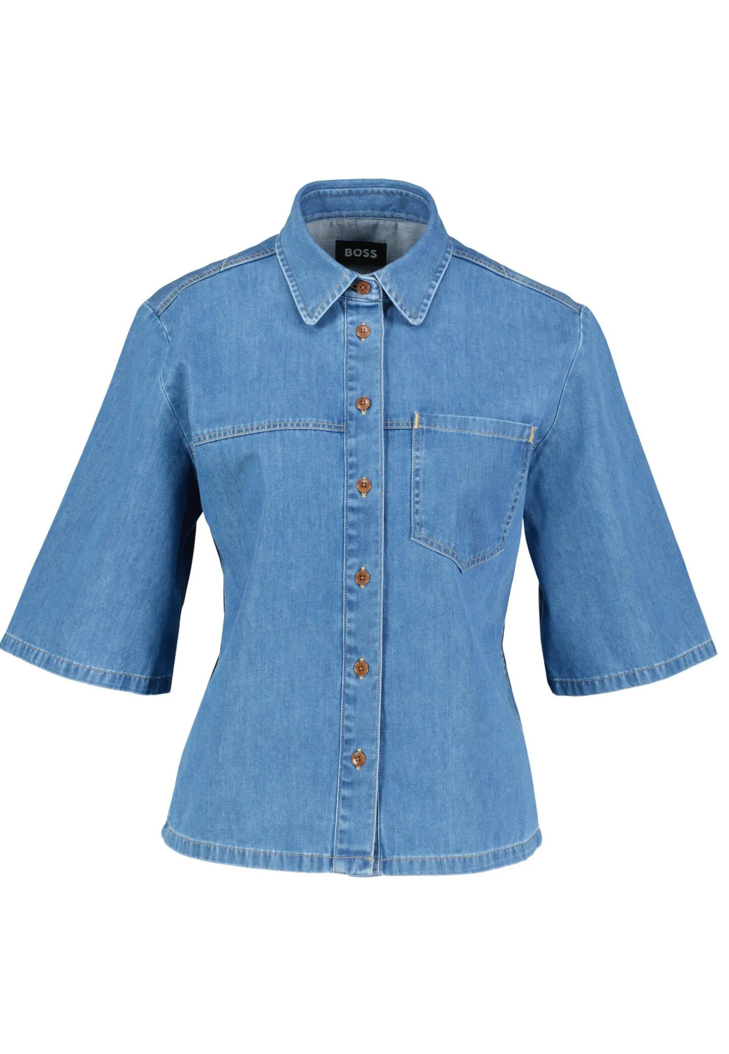 Die Jeansbluse aus hochwertiger Baumwolle von BOSS vereint zeitlosen Denim-Look mit modernem Schnitt für einen lässig-eleganten Style.