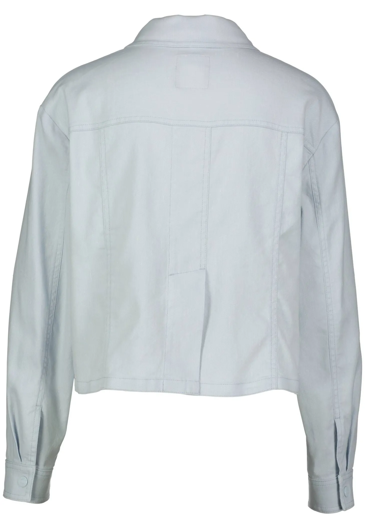 Diese taillenkurze Jacke präsentiert sich im typischen Denim-Stil mit doppelt gesteppten Nähten und Brustklappentaschen. Teilungsnähte sorgen für eine figurnahe Silhouette. Im Rücken befindet sich ein komfortabler Schlitz. Tonale Druckknöpfe mit Marc-Cain-Sport-Schriftzug komplettieren das Design.