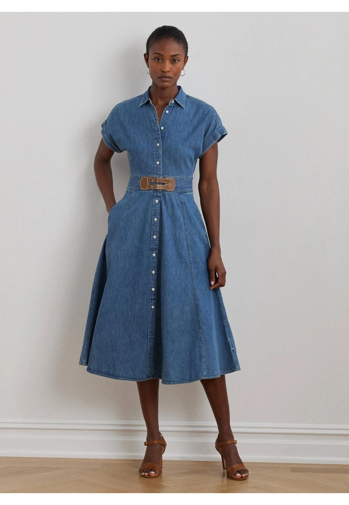 - Oben körpernahe, nach unten hin ausgestellte Silhouette