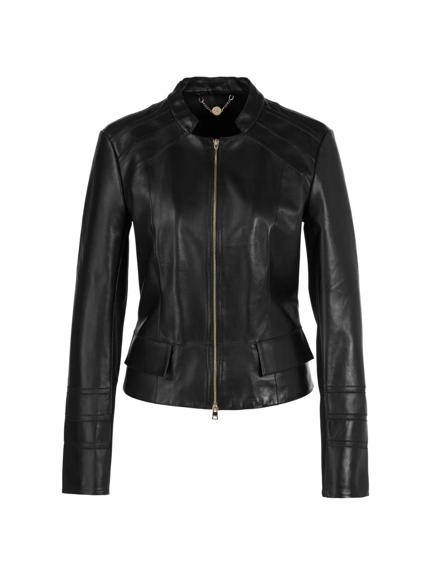 - Rundhalsausschnitt mit schmalem Stehkragen