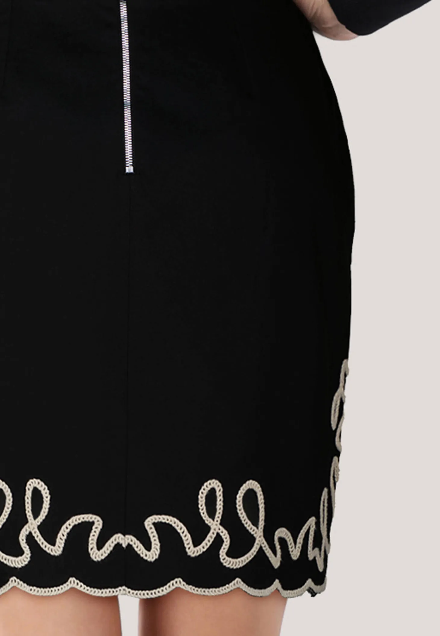 Schmal geschnittener Rock aus schwerem Baumwoll-Twill mit aufwendiger Stickerei.