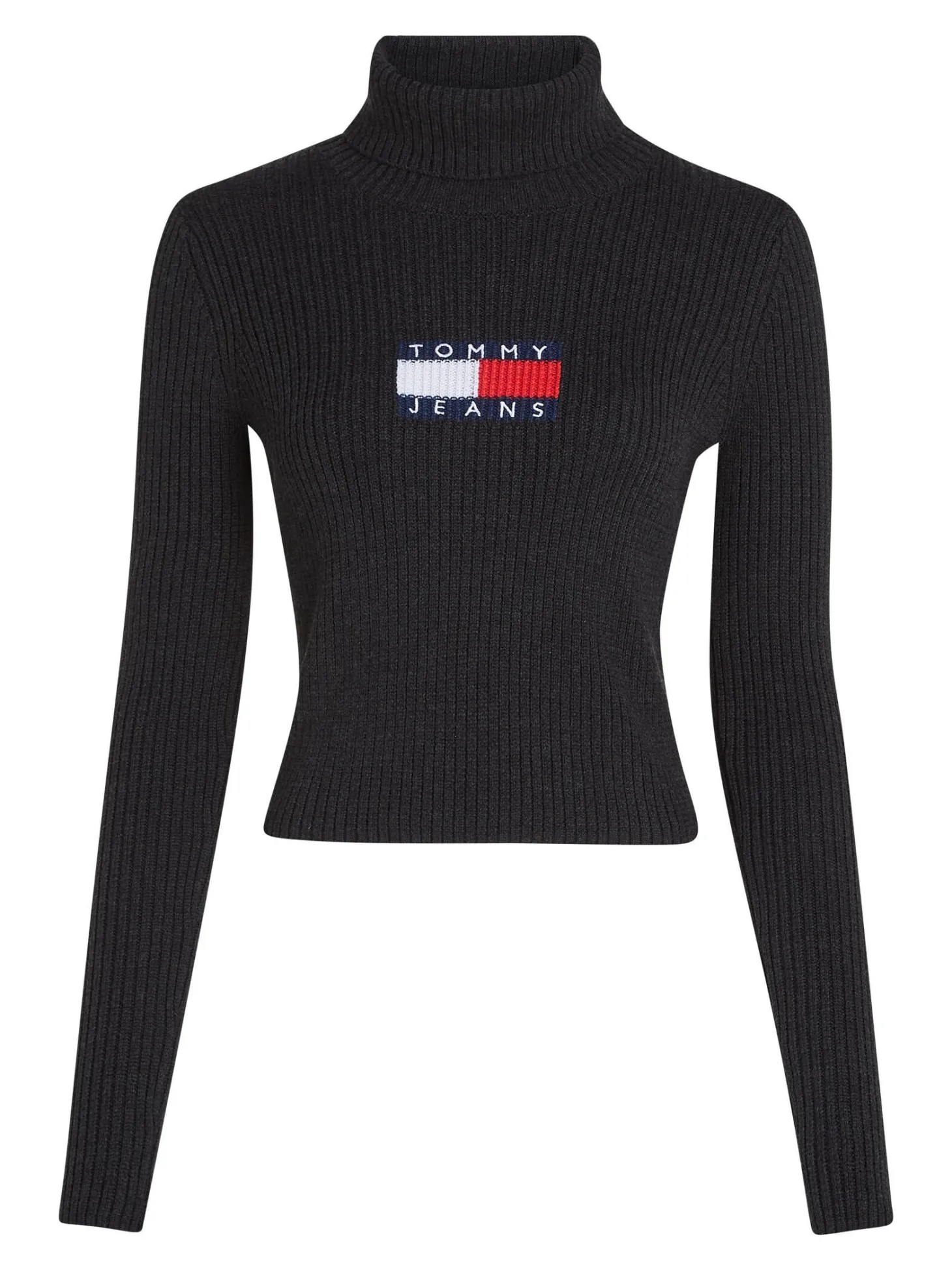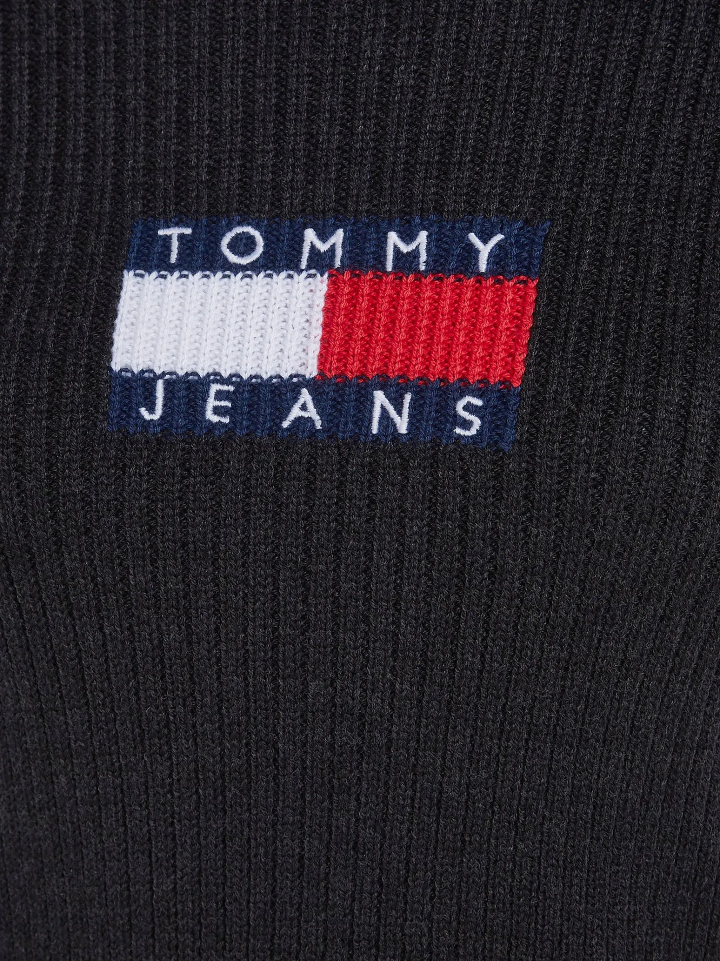 Schmal geschnittener Pullover von Tommy Jeans mit dekorativer, gestrickter Logoflagge an der Vorderseite.