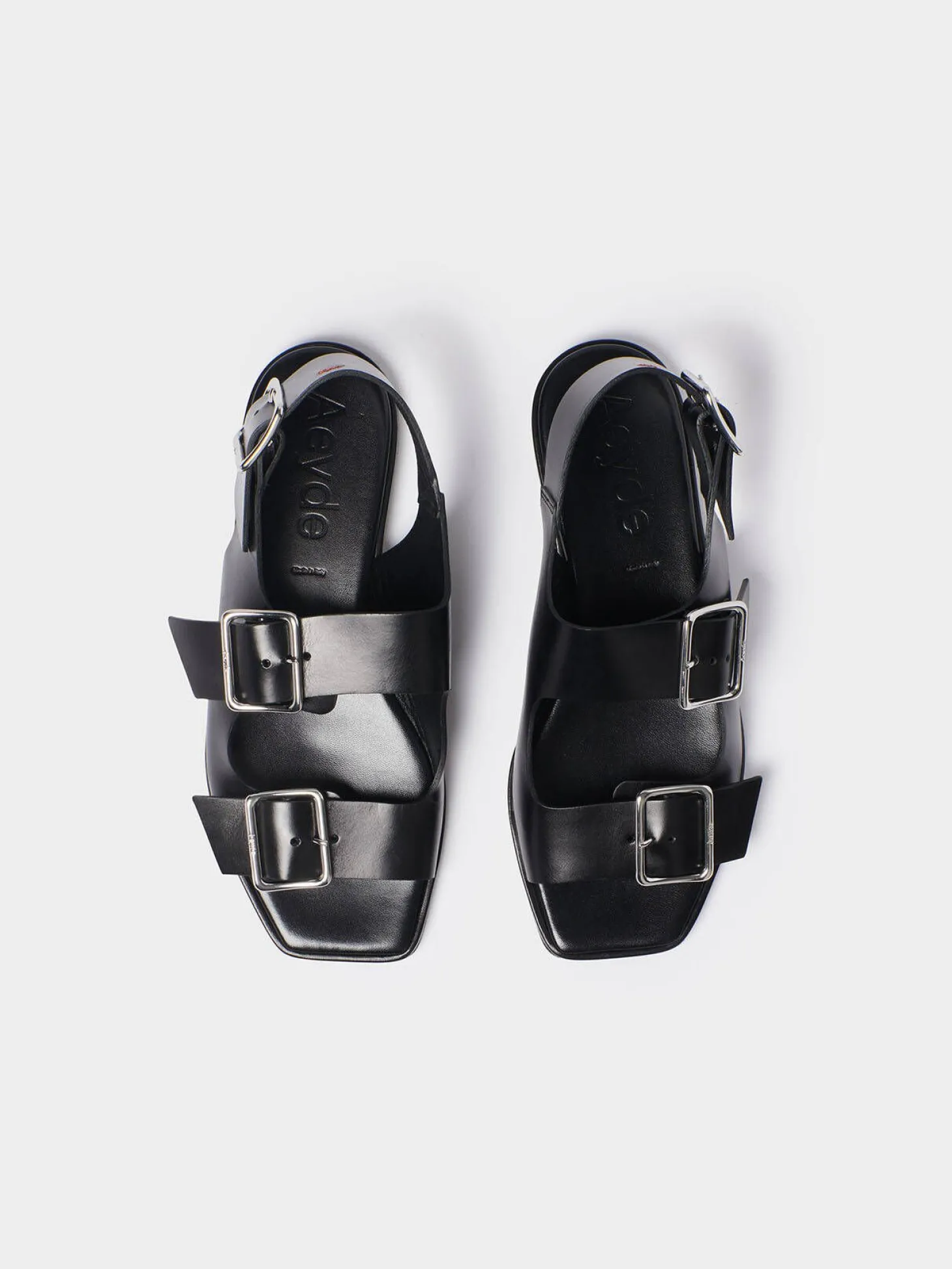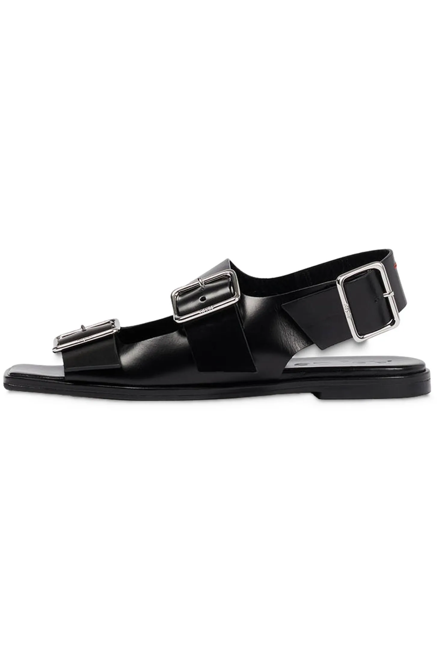 - Breite, verstellbare Riemen mit Dornschnallen an Vorfuß und Knöchelbereich