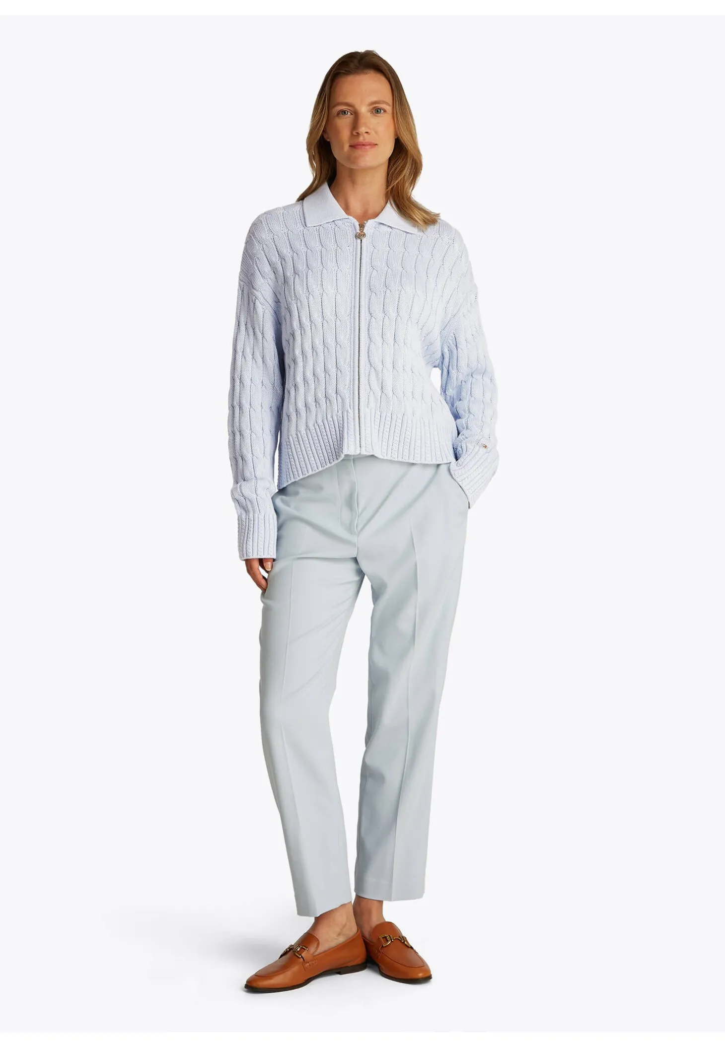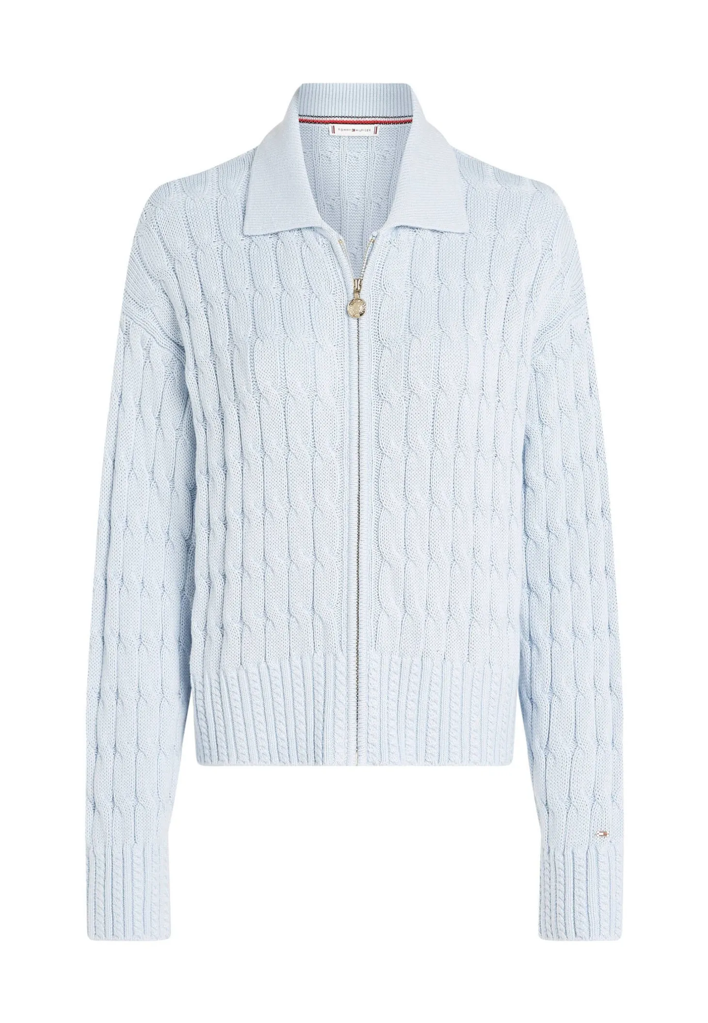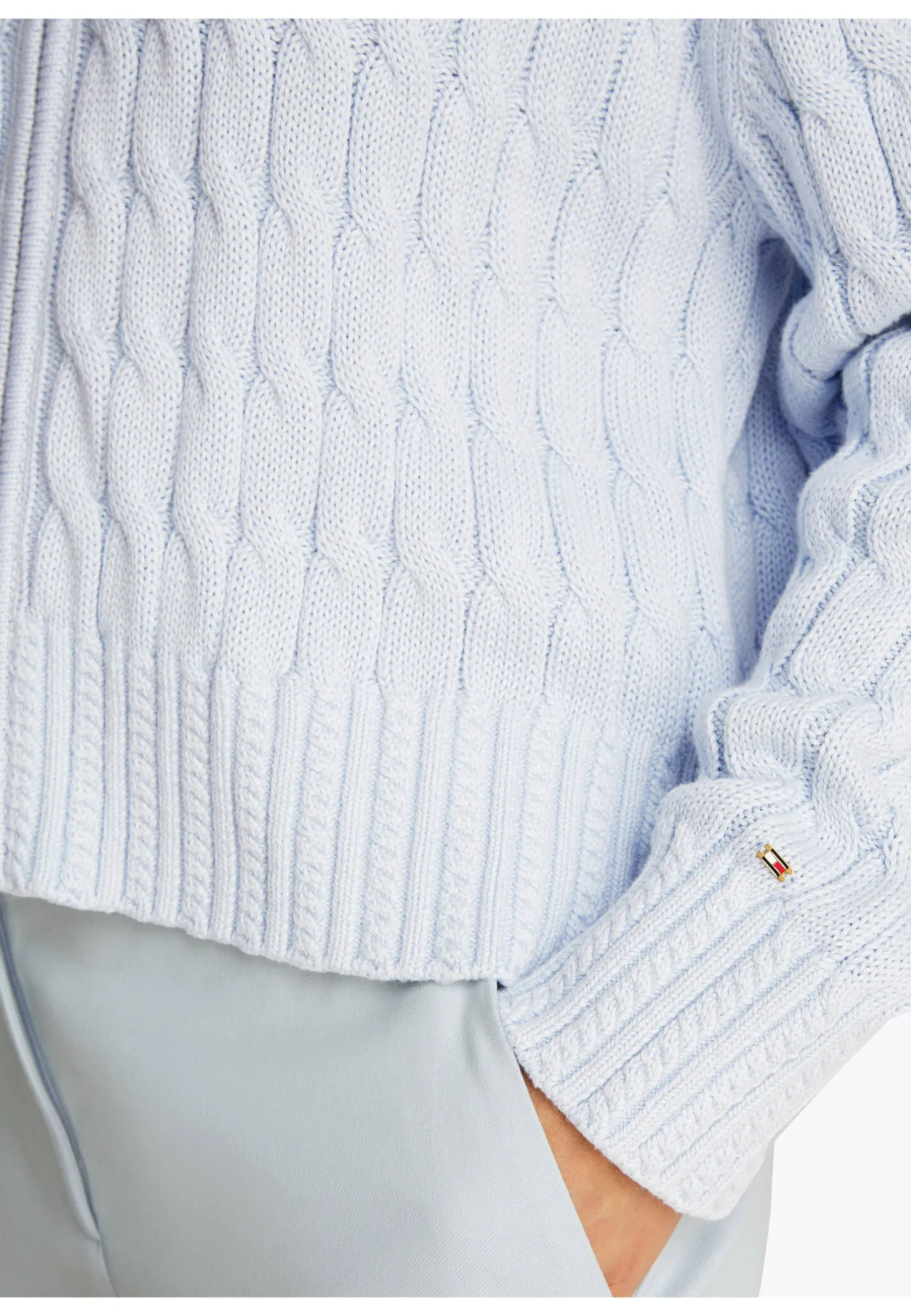 Softe Bio-Baumwolle und ein klassisches Zopfmuster machen die Strickjacke von Tommy Hilfiger zum Lieblingscardigan der Casual-Garderobe.