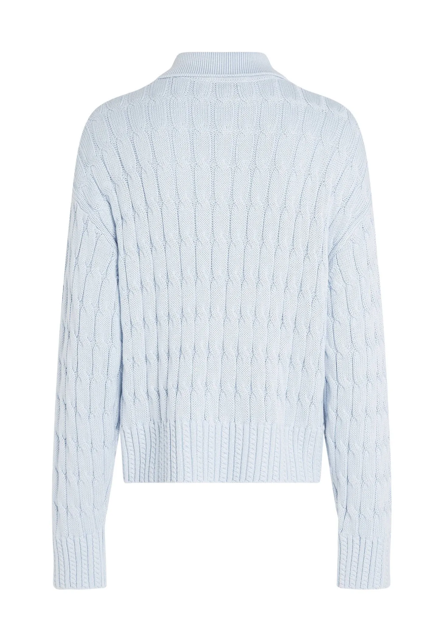 - Zopfmuster-Bündchen an Ärmeln und Rumpfsaum