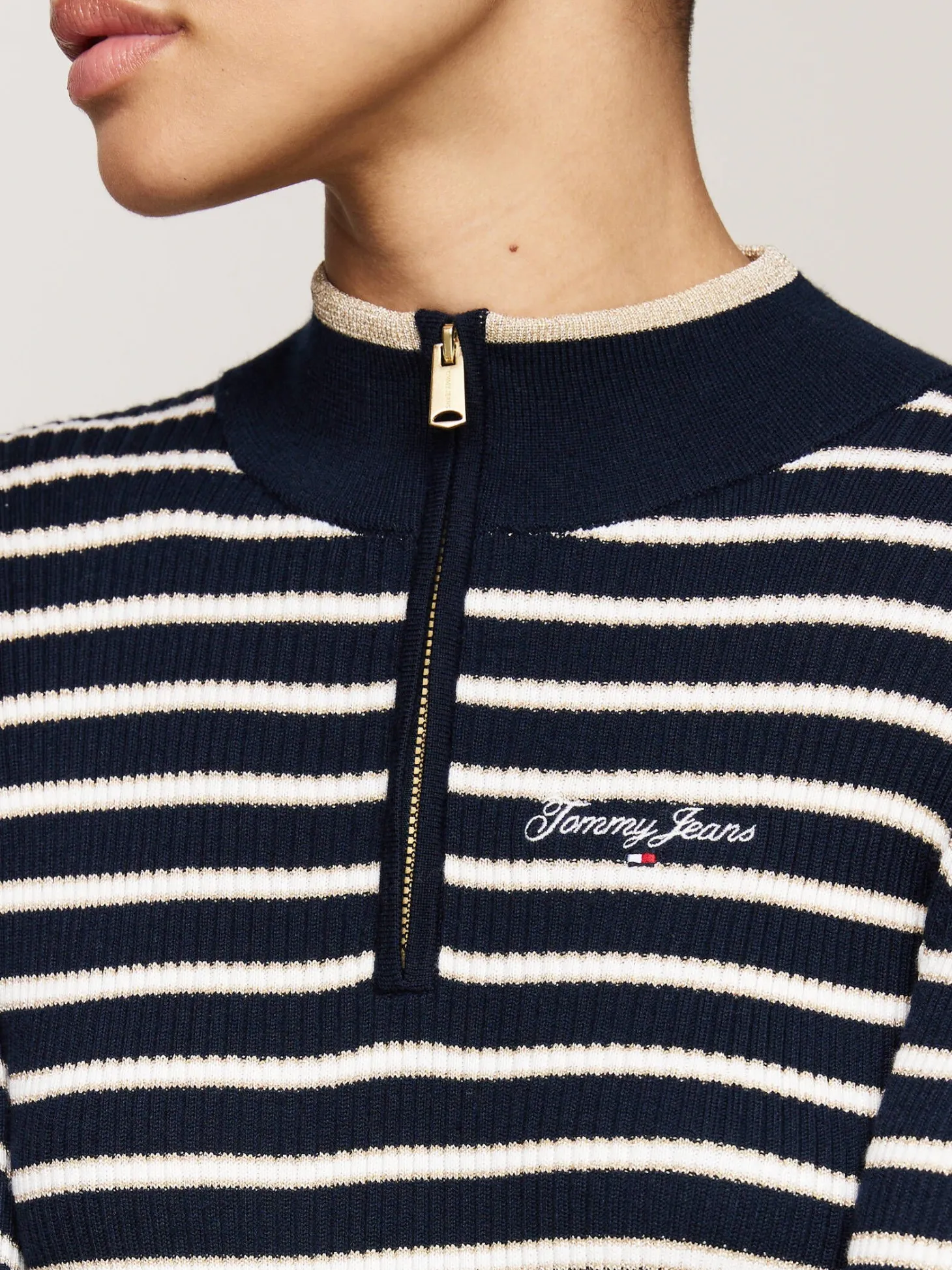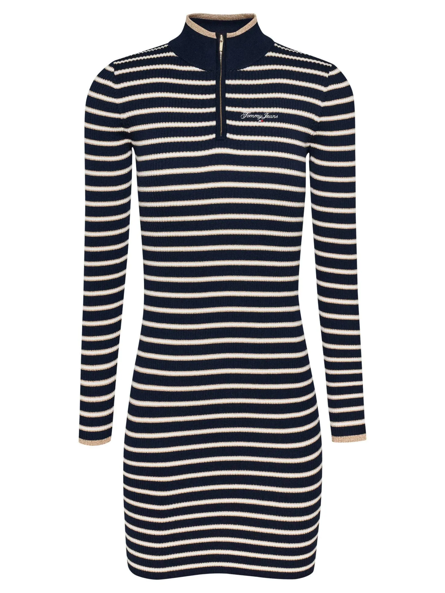 Dieses schöne Pulloverkleid von Tommy Jeans begeistert mit funkelnden Details und angenehmer Strickqualität.