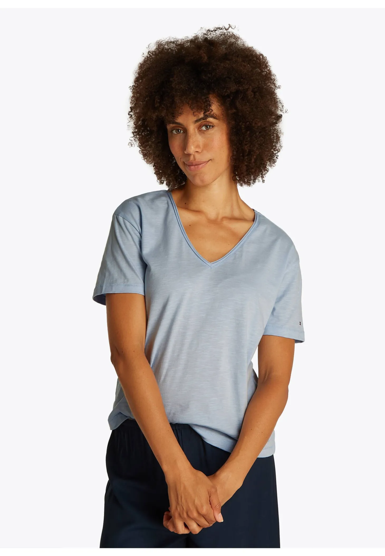 Klassisches T-Shirt von Tommy Hilfiger aus weichem Baumwolljersey in fein strukturierter Slub-Qualität.