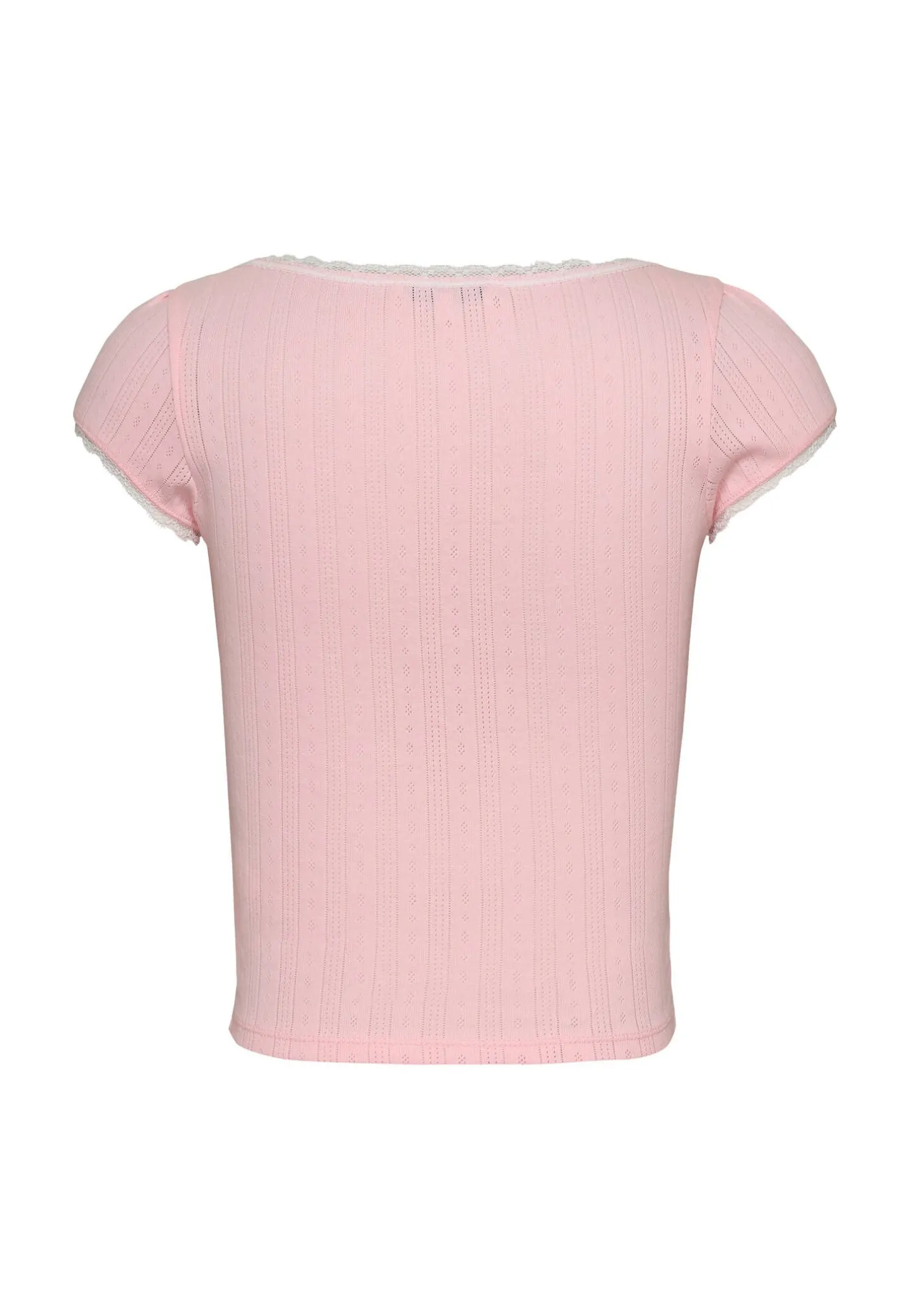 Feminines T-Shirt aus reiner Baumwolle mit hübschem Pointelle-Muster und Flügelärmeln.