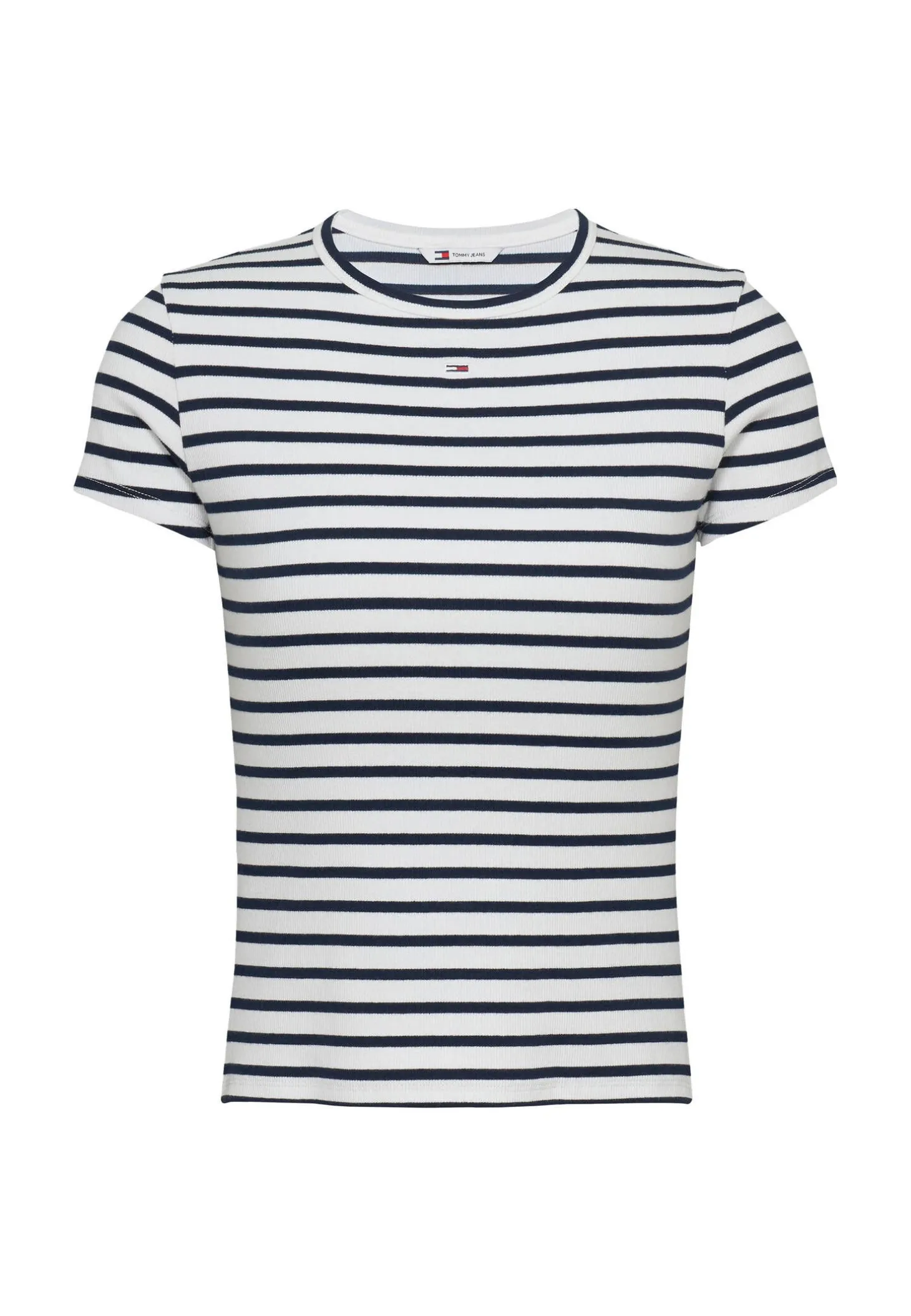 Schmal geschnittenes T-Shirt von Tommy Jeans mit Rundhalsausschnitt und maritimen Streifen.