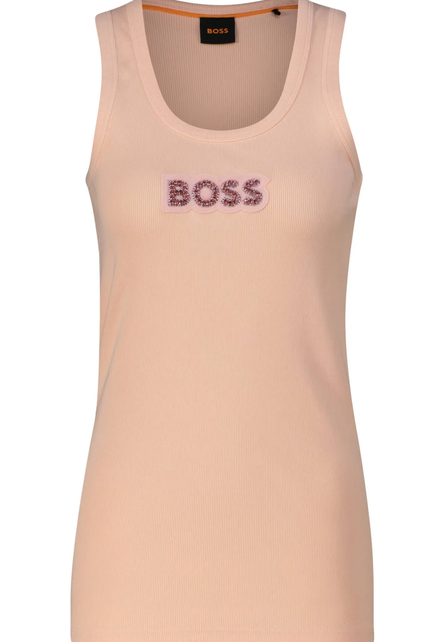 Lass es glitzern mit dem BOSS Tanktop aus softem Rippjersey mit funkelndem Label-Schriftzug an der Vorderseite!