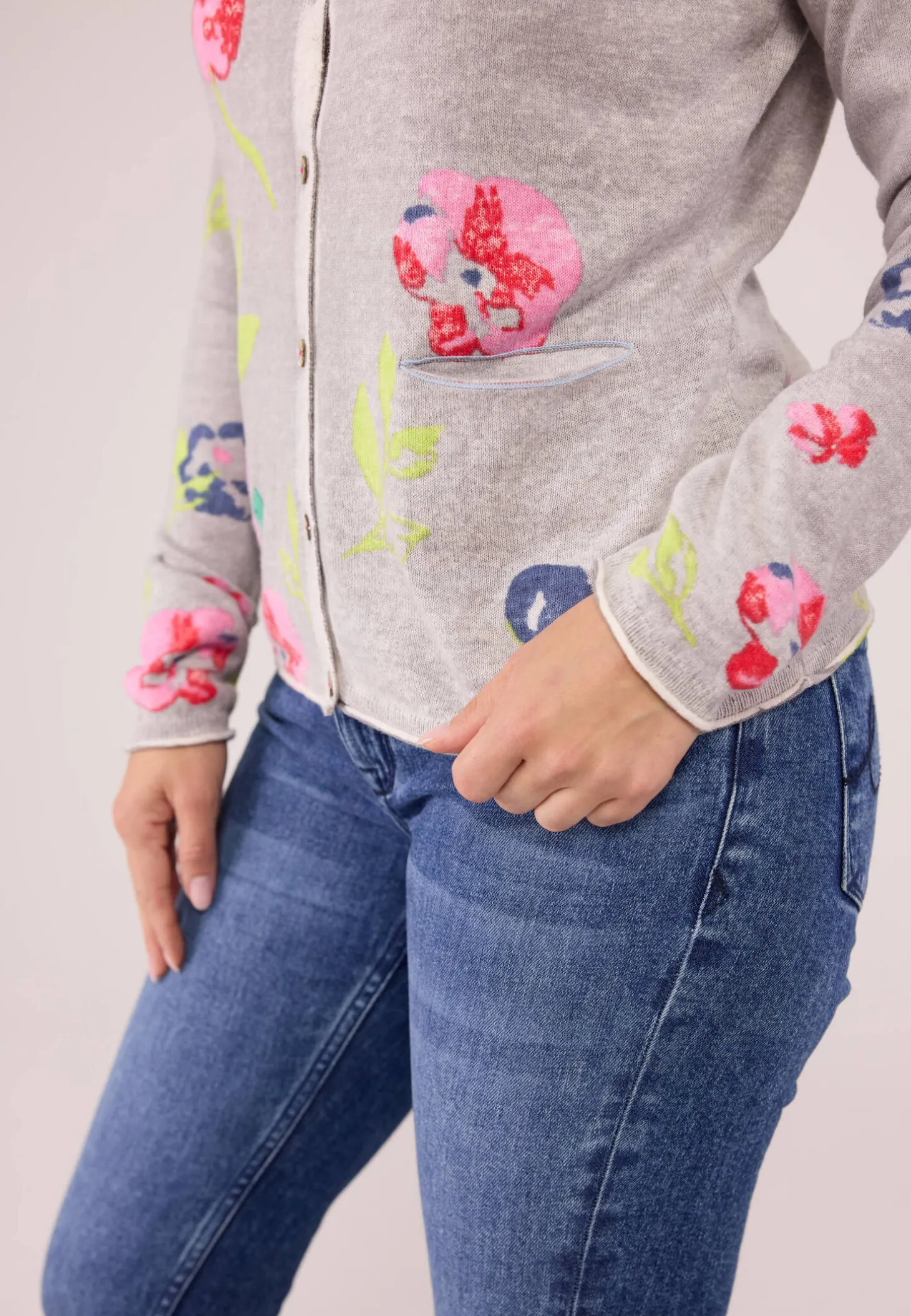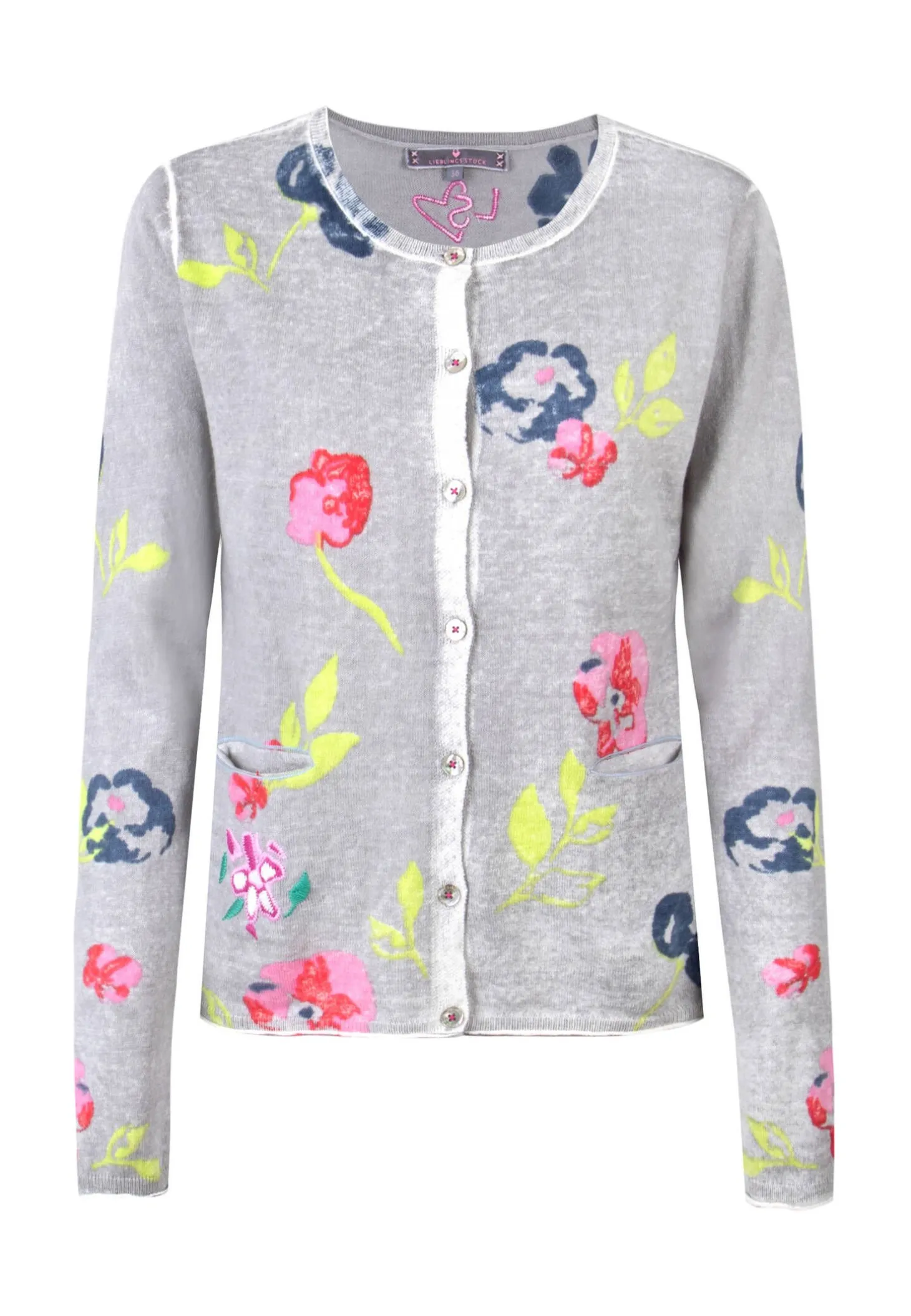 Die Trachtenjacke Zelma verzaubert mit Stickerei und besonderem Allover-Blumenprint.