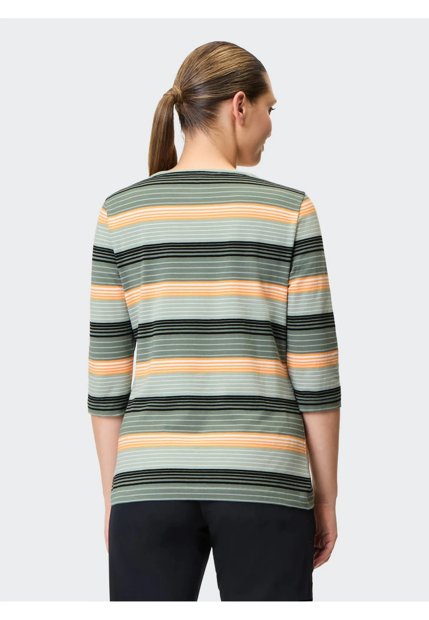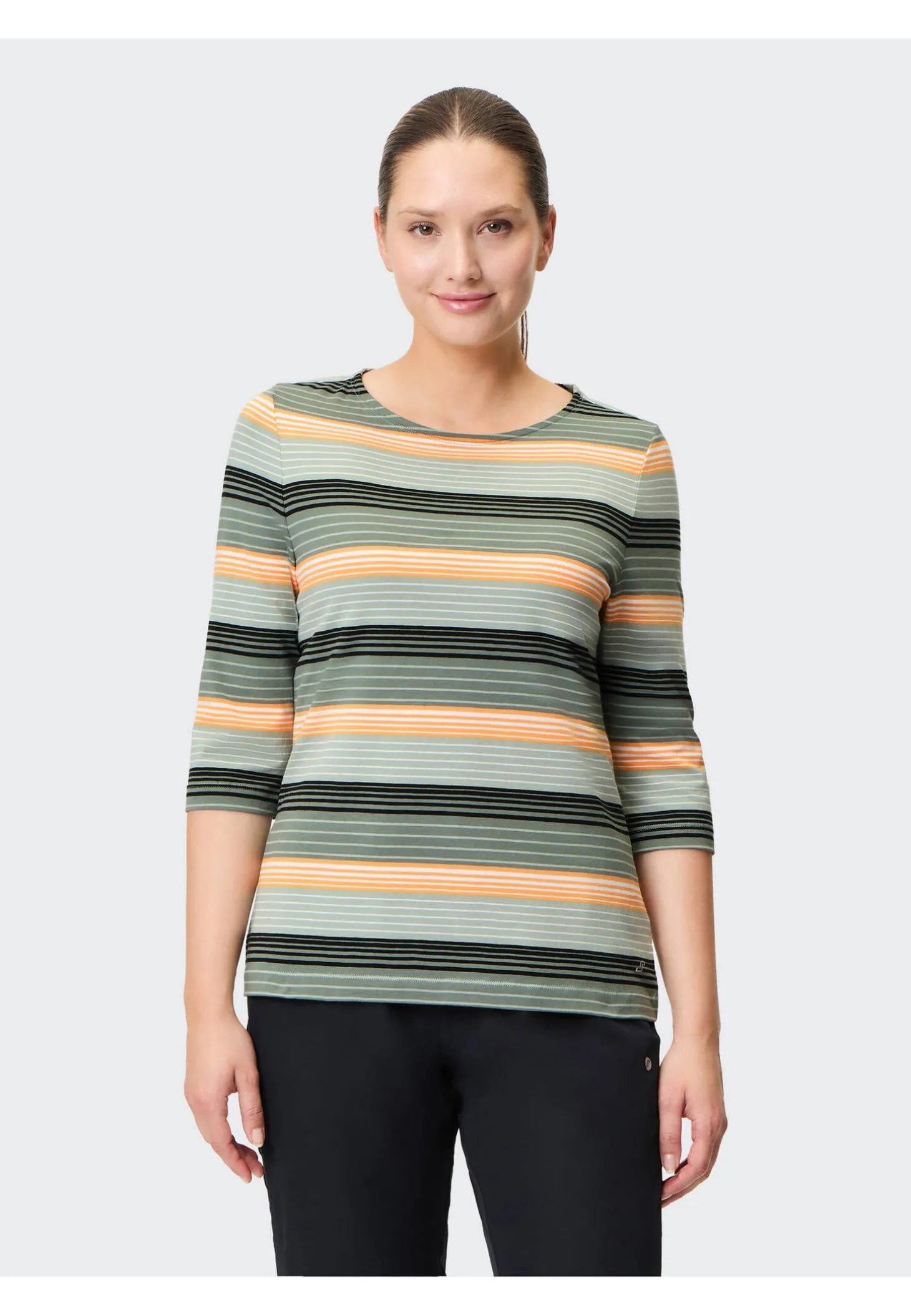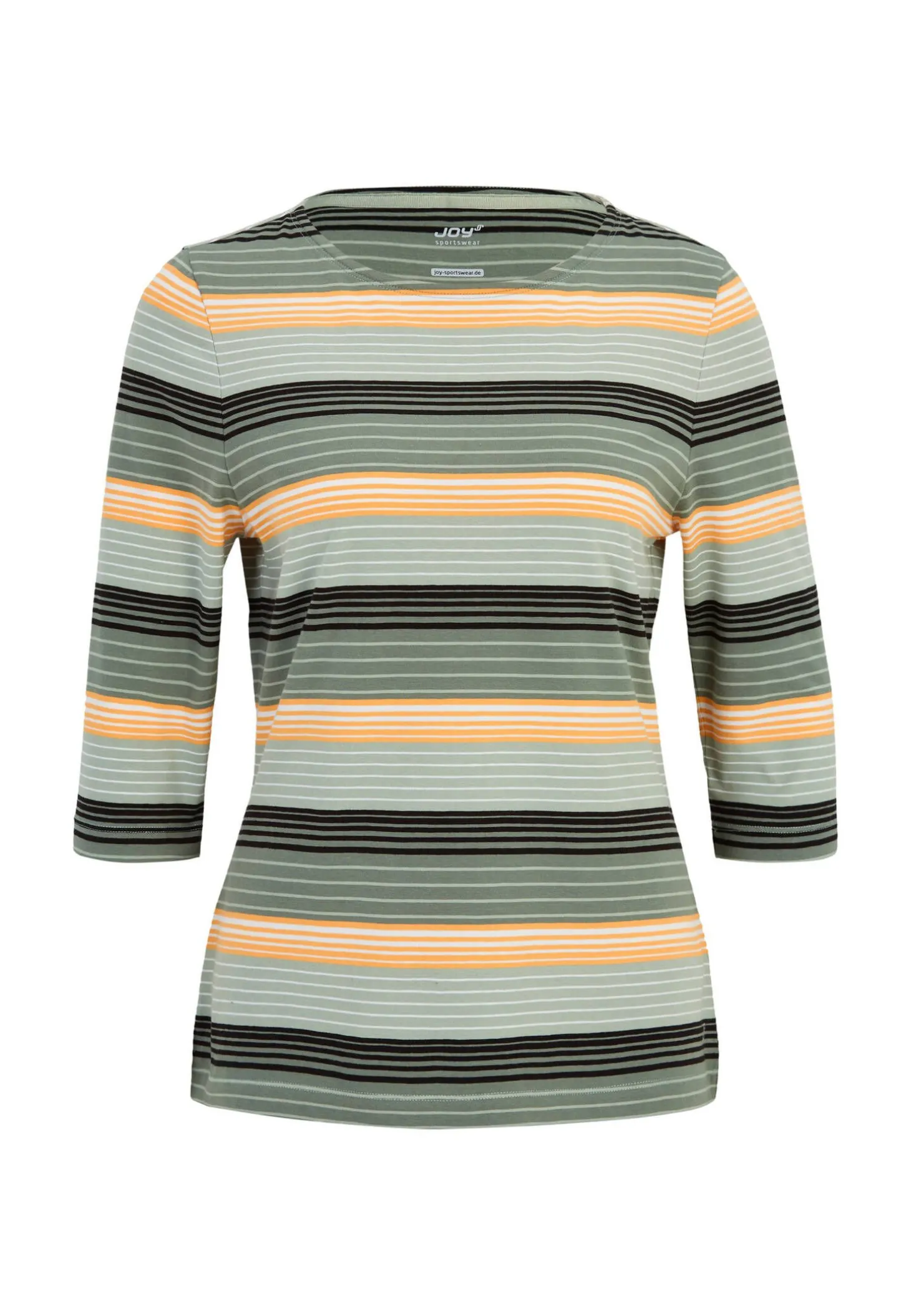 Das Trainingsshirt Rina von Joy begleitet dich beim Workout mit hohem Tragekomfort und modischem Ringelmuster.