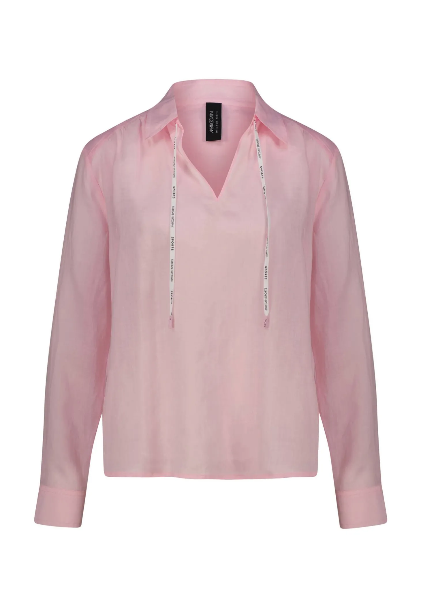 Ideal für warme Temperaturen ist diese Schlupfbluse aus zartem Ramie. Das Material ist semitransparent. Die Bluse zeigt einen lockeren Schnitt. Der Kragen hat im Vorderteil einen Schlitz und kann mit einer Kordel geschlossen werden. Manschettenärmel runden das Design ab.
