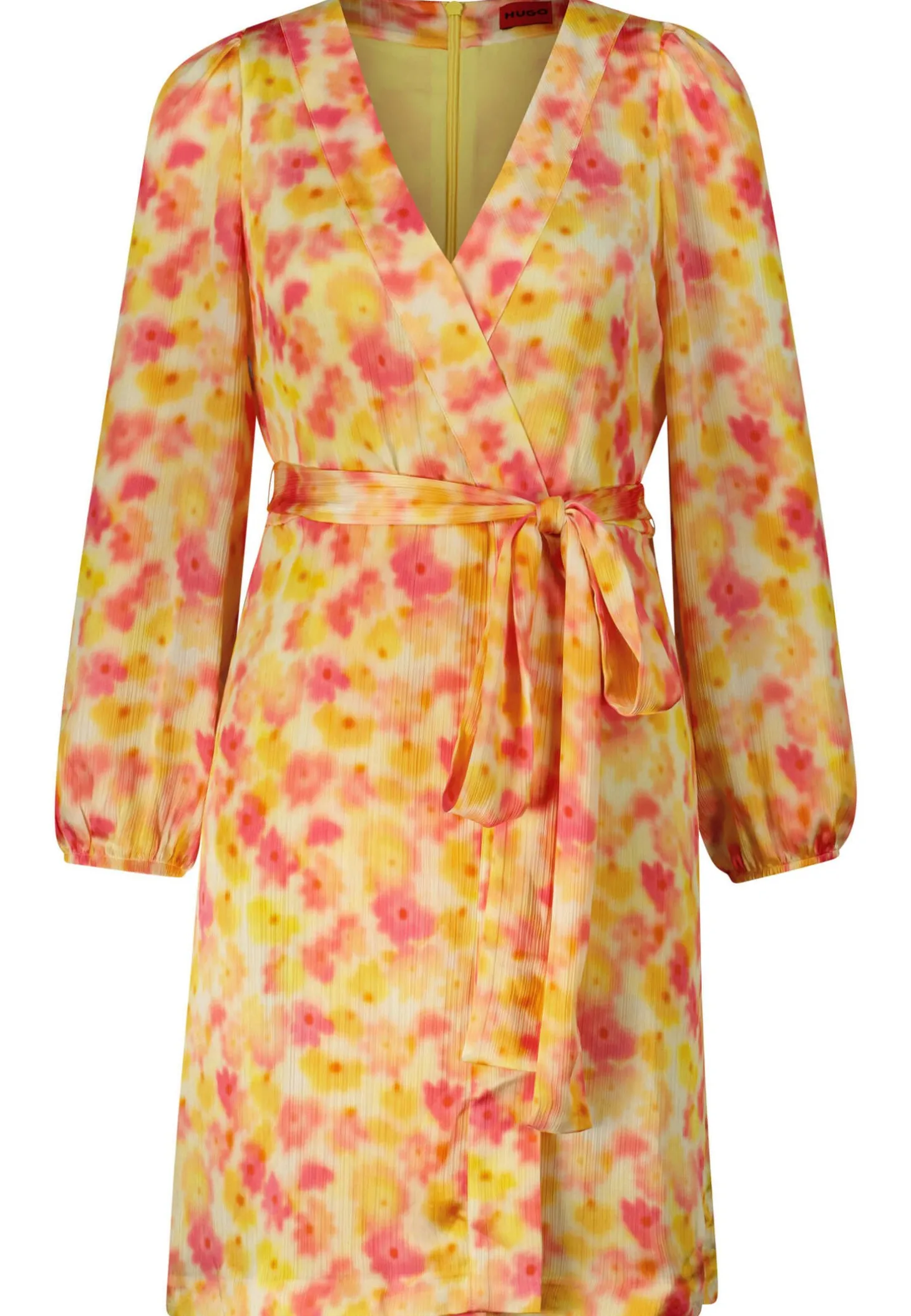 Das Wickelkleid besticht durch seinen floralen Retro-Print und eine schmeichelhafte Silhouette, mit Stoffgürtel, gefertigt aus nachhaltigem Material für einen stilvollen und nachhaltigen Look.
