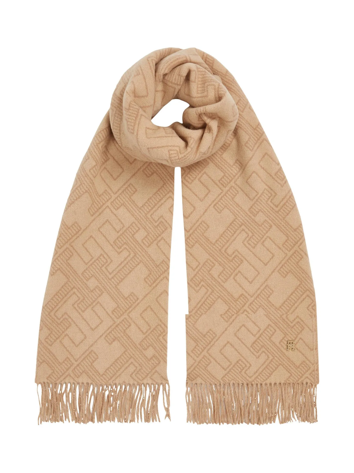 Kuscheliger Schal aus reiner Wolle in signifikantem Monogramm-Design von Tommy Hilfiger.