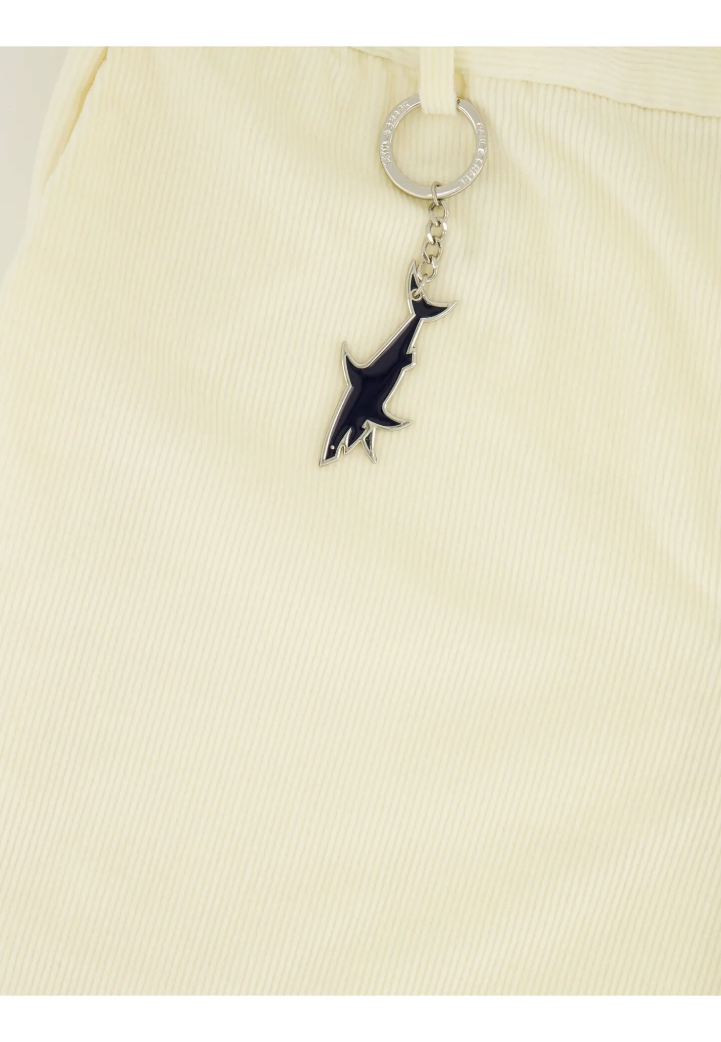 - Metallanhänger im charakteristischem Haifischdesign am Hosenbund