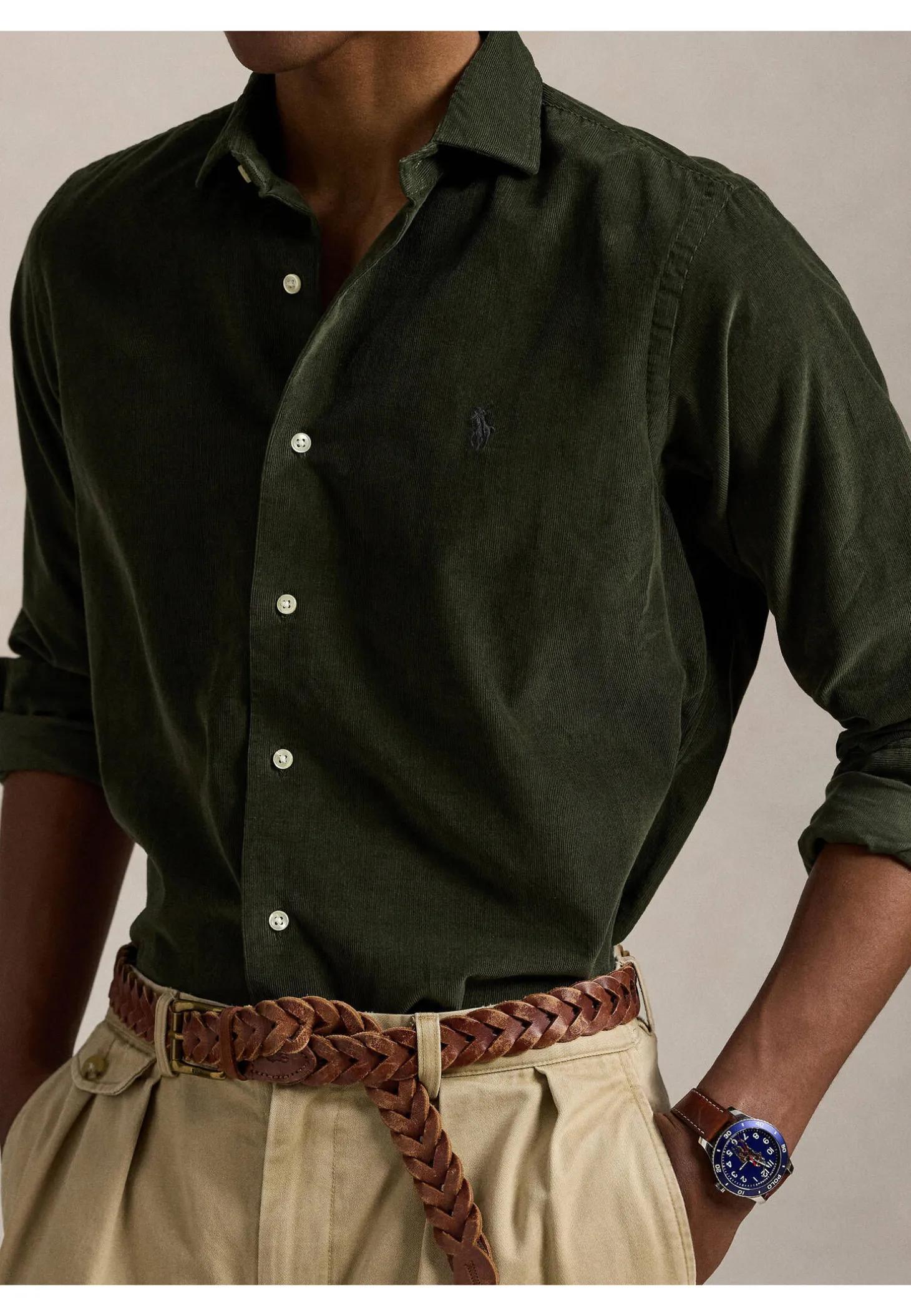 Fein gerippter Baumwollkordsamt verleiht dem Hemd rustikalen Charme, das gestickte Pony-Logo rundet den Look ikonisch ab.