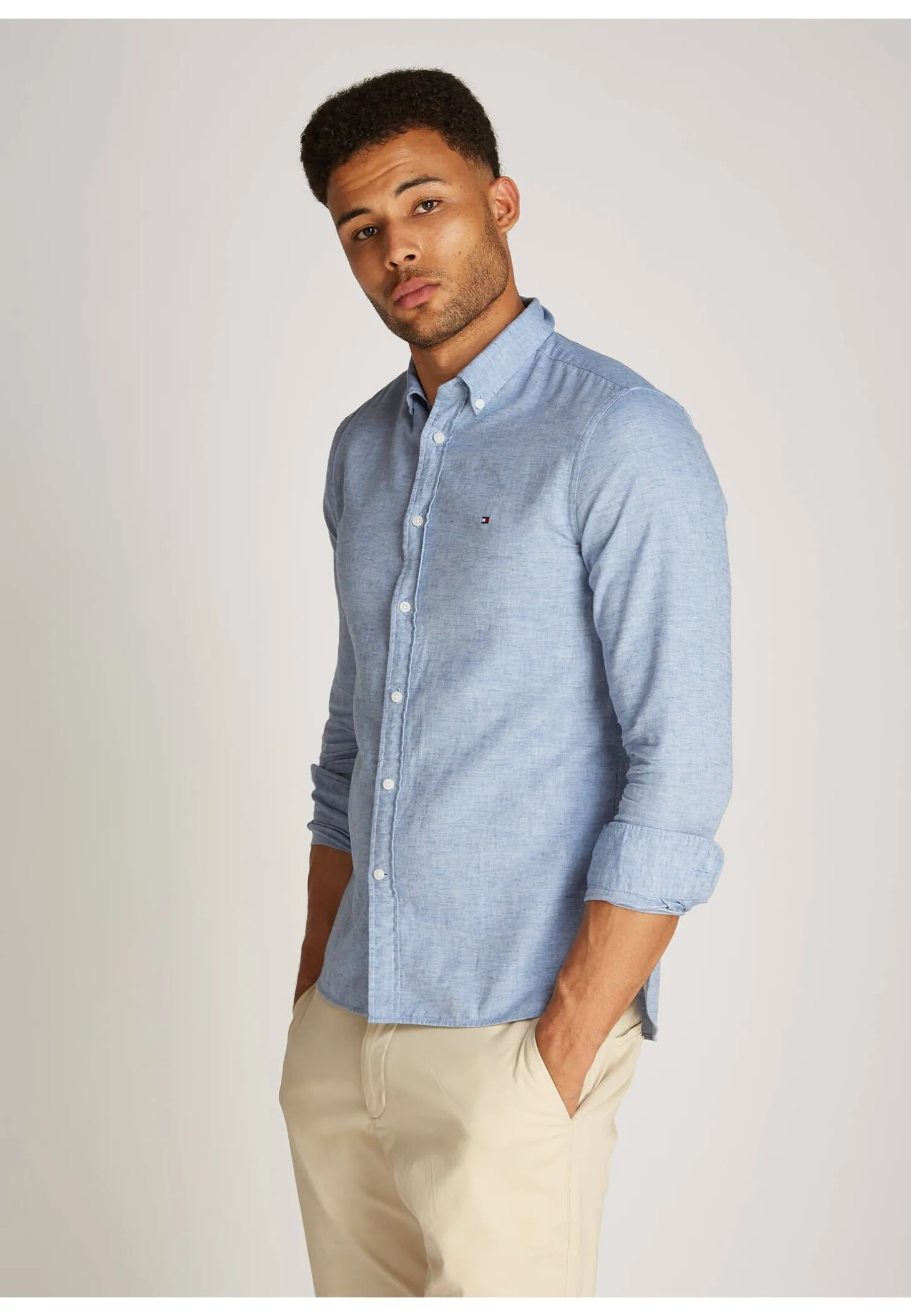 Das schöne Hemd von Tommy Hilfiger überzeugt mit angenehmer Baumwoll-Leinenmischung und zeitlosem Look.
