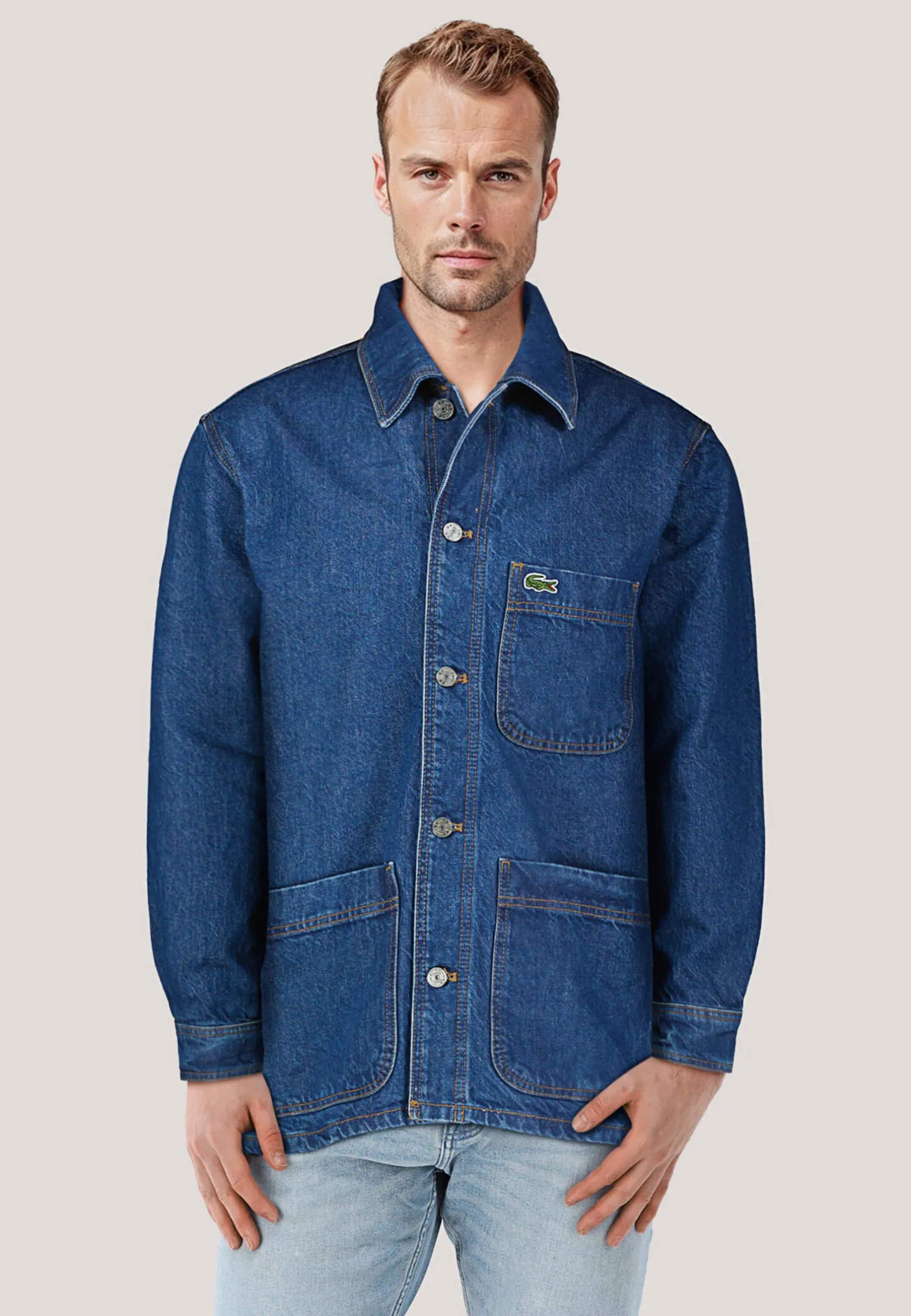 - Aufgenähtes, gesticktes Krokodil auf der Brusttasche