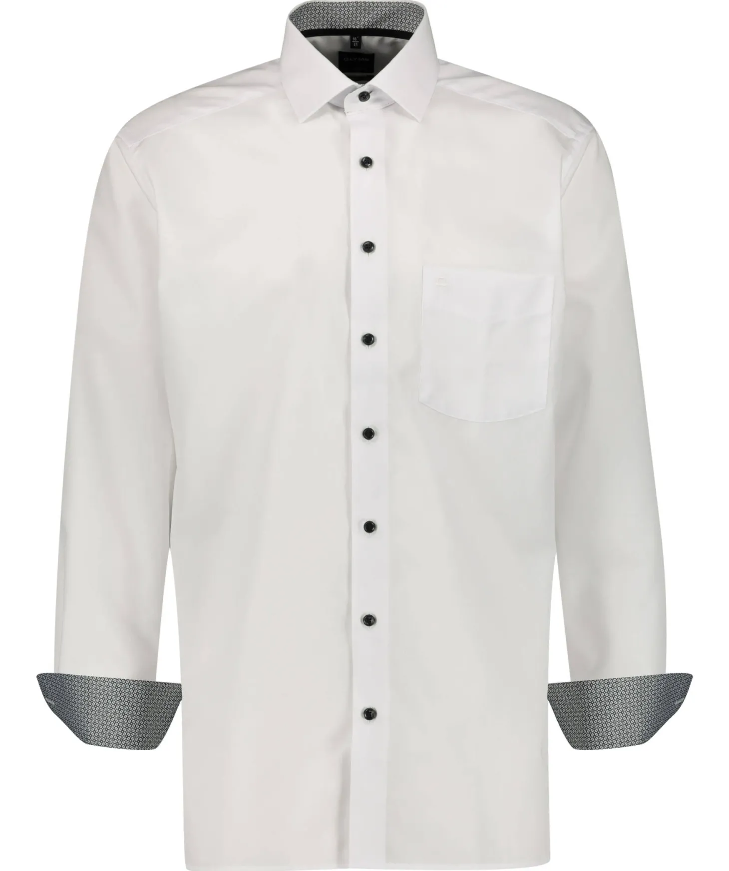 - Durchgängige Knopfleiste in Kontrastfarbe