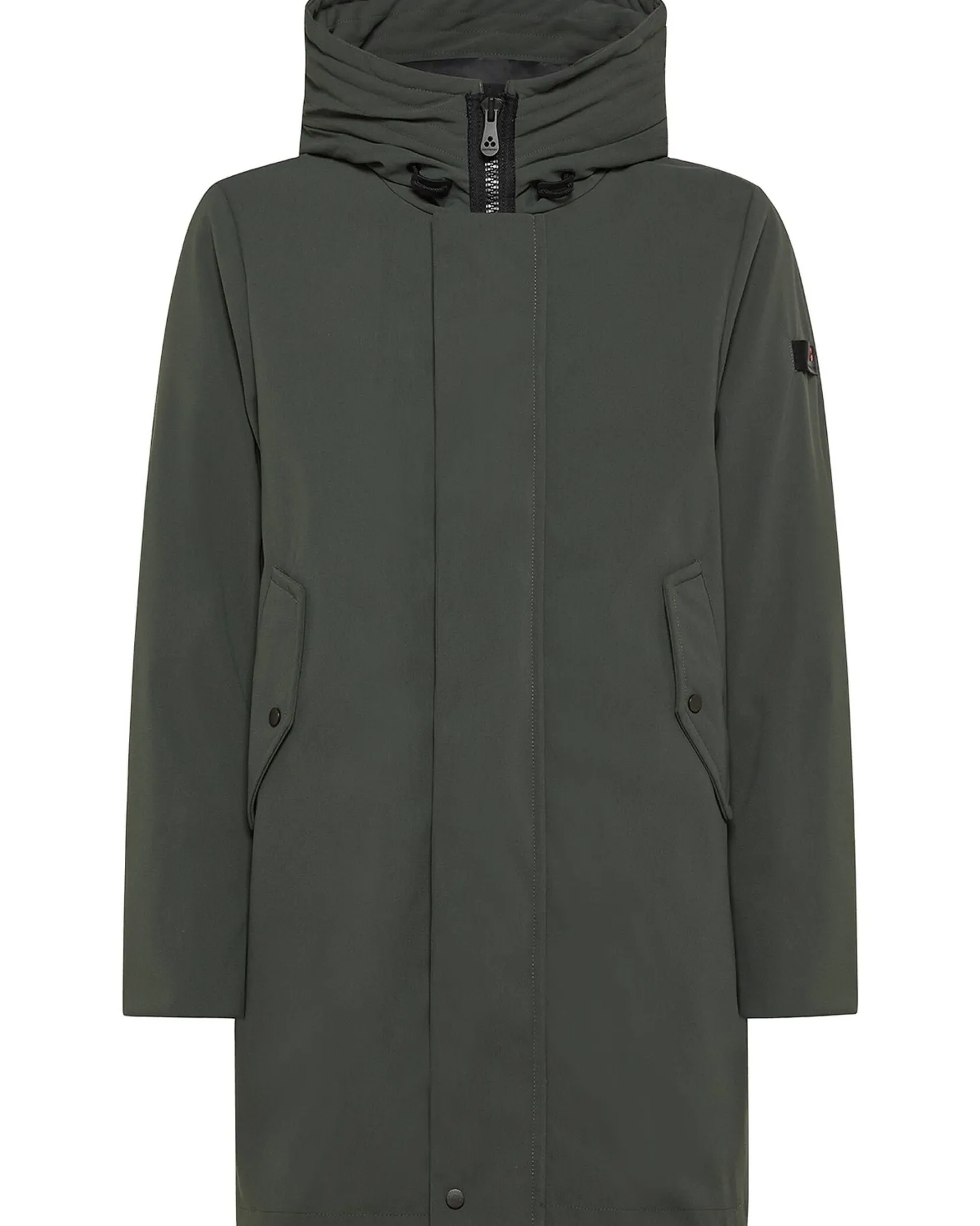 Dieser Parka verfügt über einen durchgehenden Reißverschluss, eine Schutzhaube und praktische Knopfverschlusstaschen.