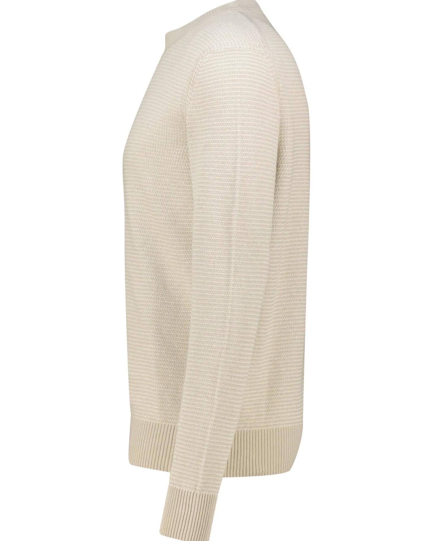 - Rippbündchen am Halsausschnitt, Ärmeln und Saum