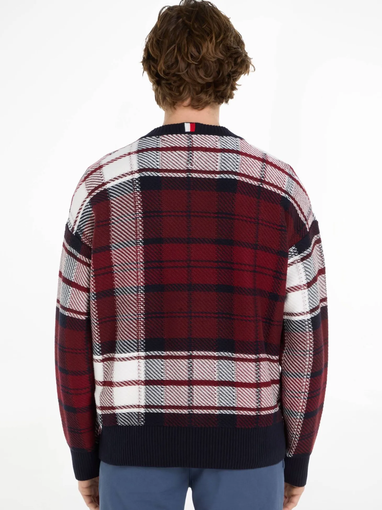 Dieser Strickpullover von Tommy Hilfiger kommt im klassischen Vichy-Karo-Muster und lässt sich lässig zu einem weißen Hemd kombinieren.