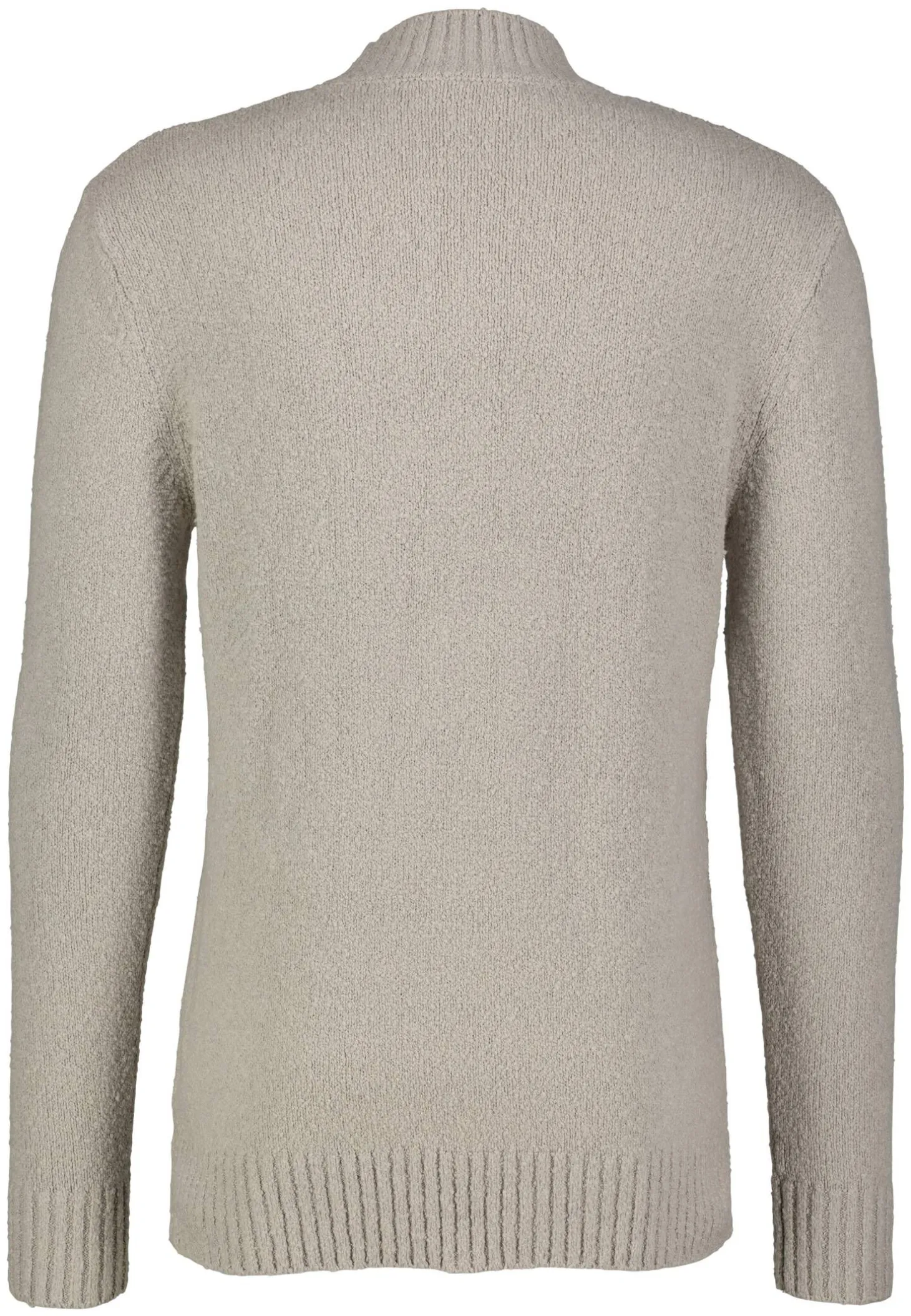 Drykorn präsentiert den gerade geschnittenen Pullover Zayn aus softem Bouclégarn, ausgestattet mit klassischen Rippenbündchen.