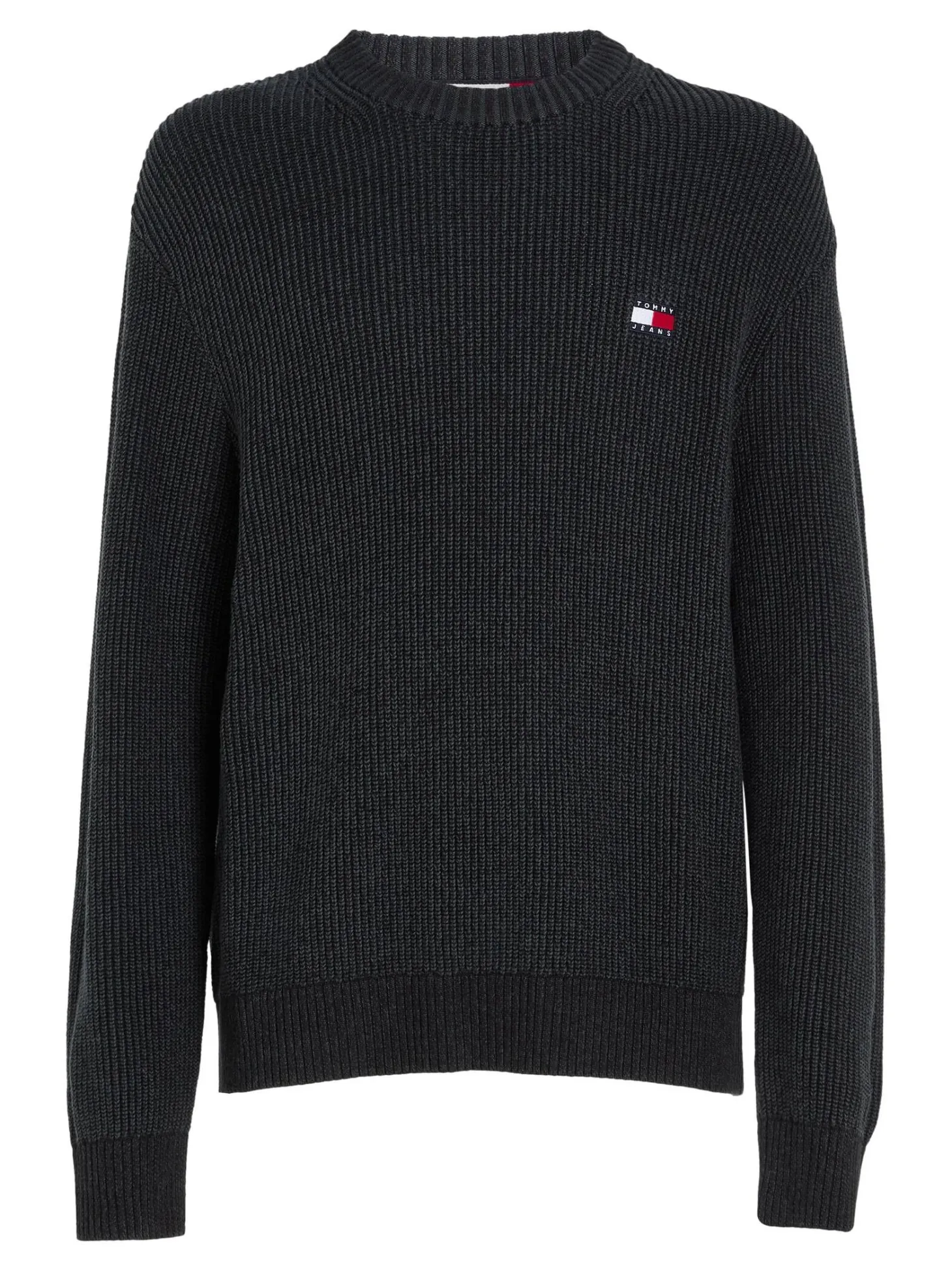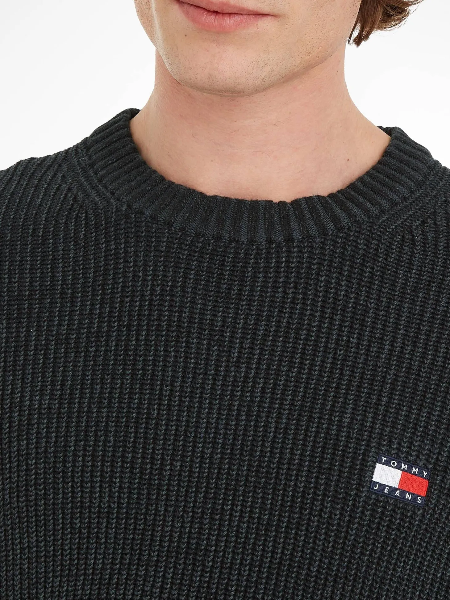 Der zeitlose Rippstrick-Pullover von Tommy Jeans lässt sich optimal zu deinem Lieblingsoutfit kombinieren.