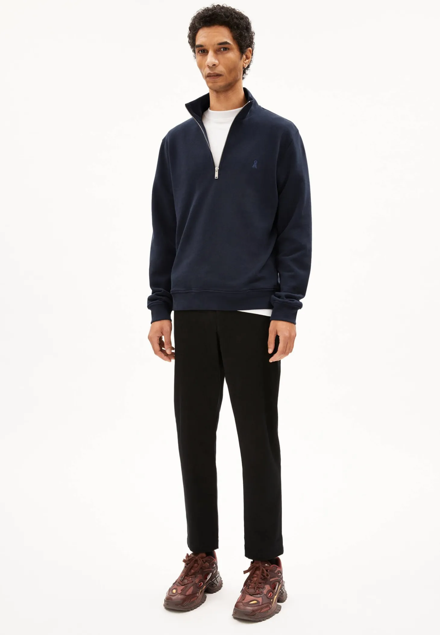 - Dezente Logo-Stickerei in Brusthöhe links