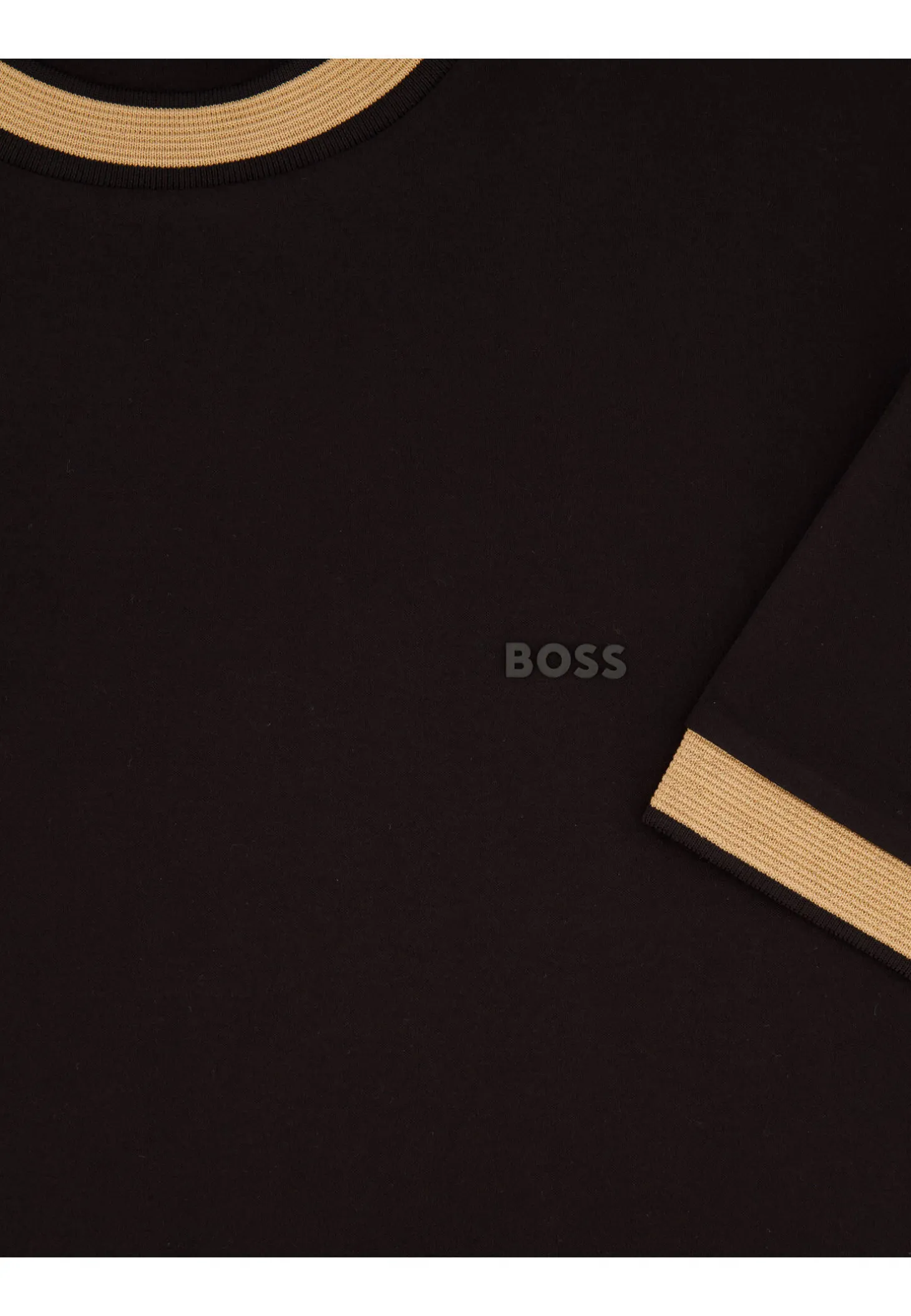 - Kontrastfarbene gerippte Bündchen am Ausschnitt und Ärmelabschluss