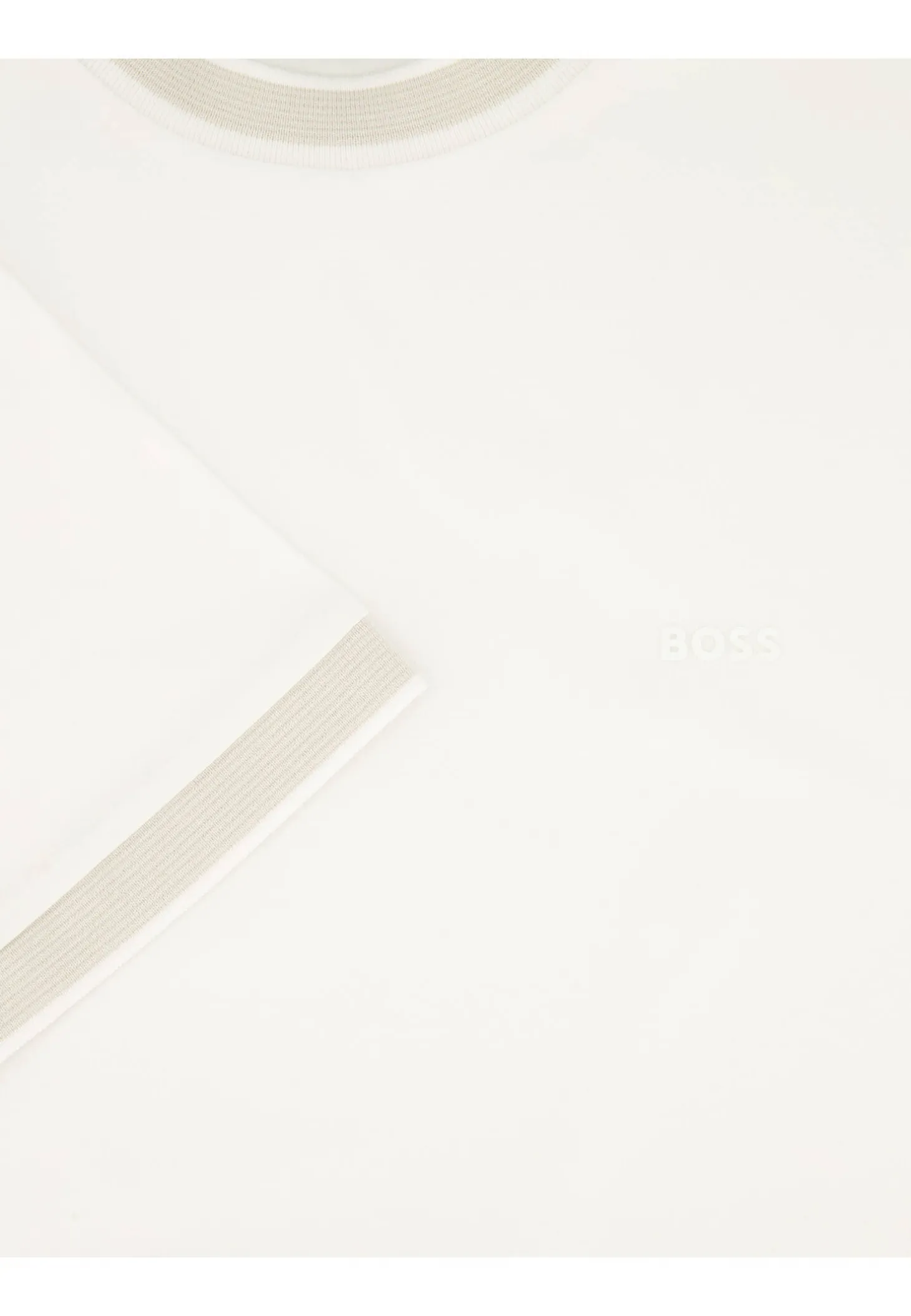 - Kontrastfarbene gerippte Bündchen am Ausschnitt und Ärmelabschluss