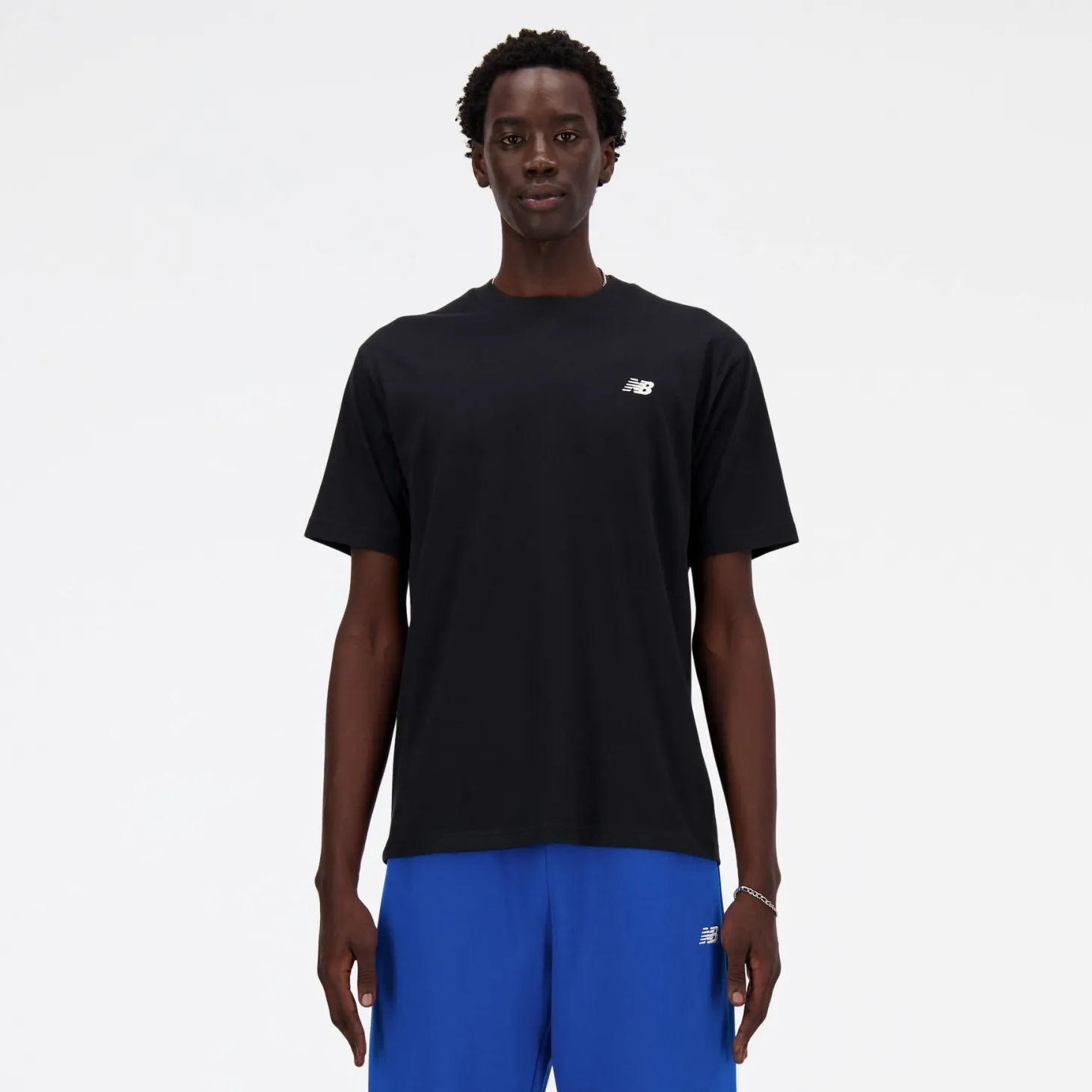 Klassisches T-Shirt von new balance mit kleinem, gesticktem Logo an der linken Brustseite.