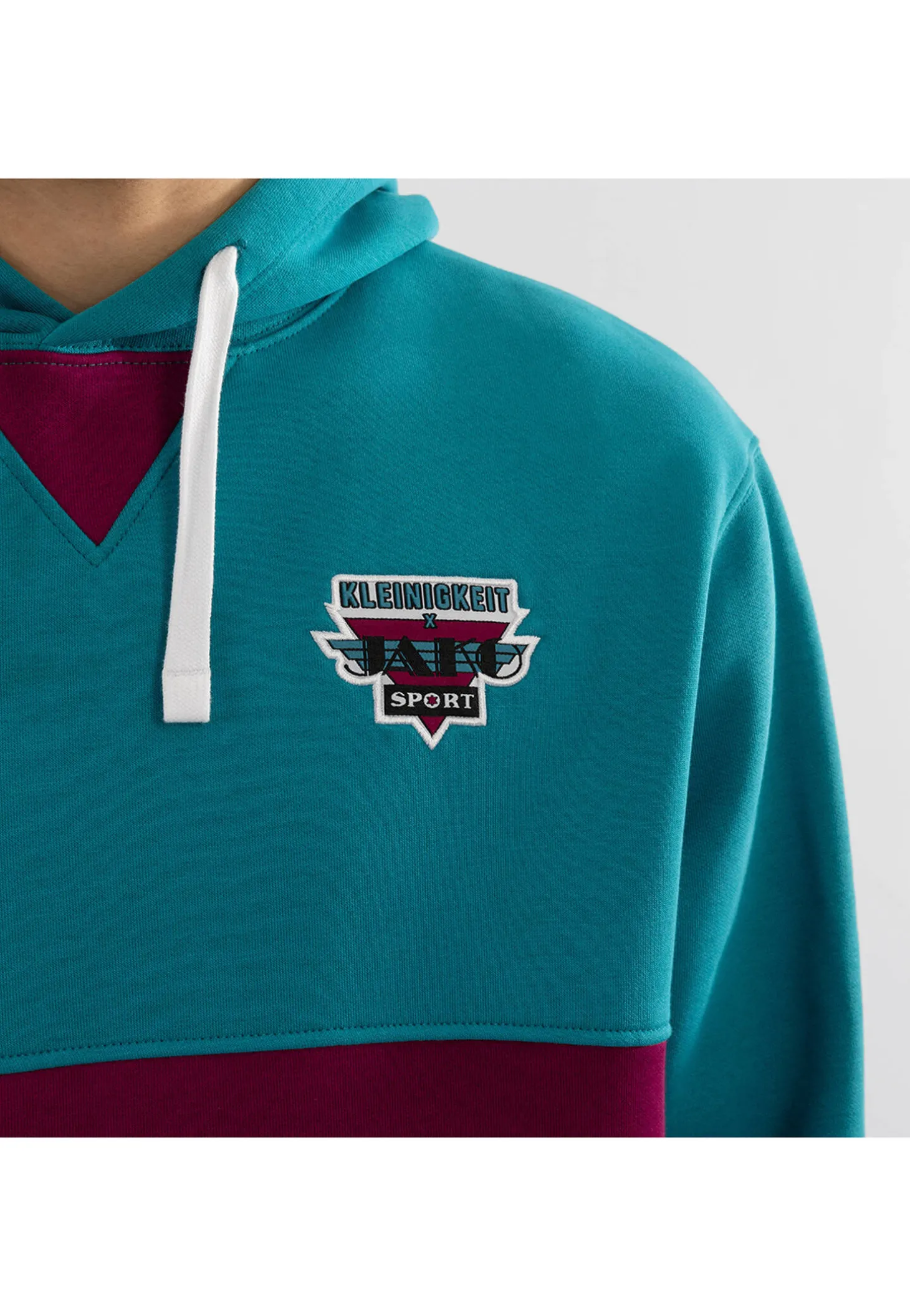 Der lässige Hoodie von Kleinigkeit x JAKO vereint Retro-Design, höchsten Tragekomfort und Nachhaltigkeit. Das Kleinigkeit x JAKO Logo und das passende Tape verleihen ihr eine sportlich-elegante Note im angesagten Retro-Look.