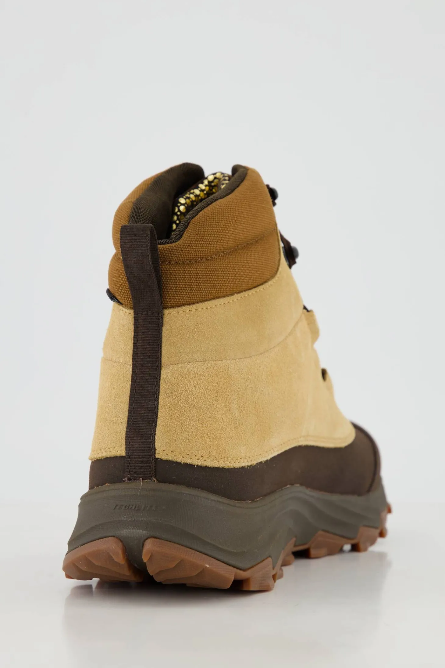 - Obermaterialmix aus Veloursleder, Baumwoll-Canvas und Scratch-Gummistiefel
