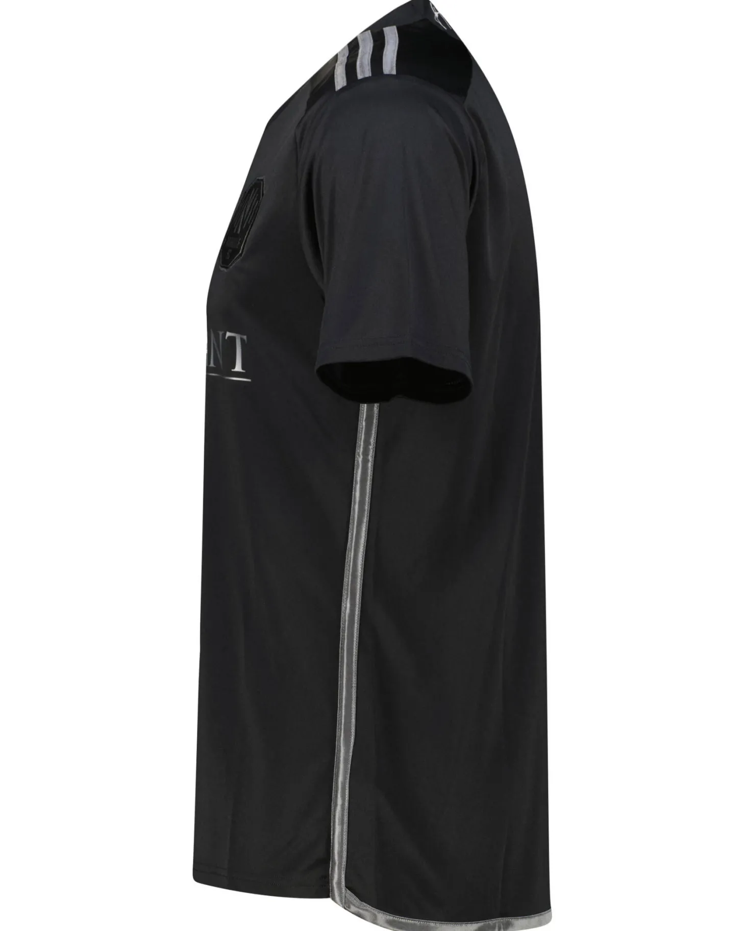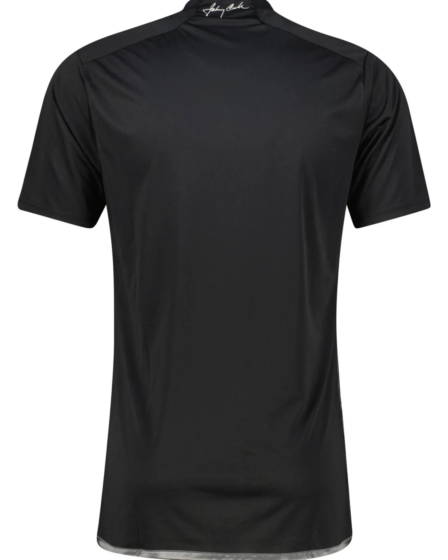 - Appliziertes Vereinslogo an der linken Brustseite, im Nackenbereich die gummierte Unterschrift des „Man in Black“